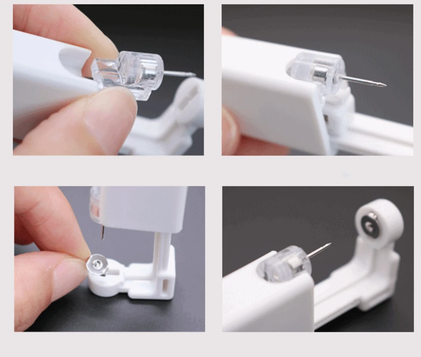 Note: You must be fast, accurate and ruthless when pressing! Once you press it to the end, don’t release it halfway down, the ear piercers will spread out, and it may not be deep enough.