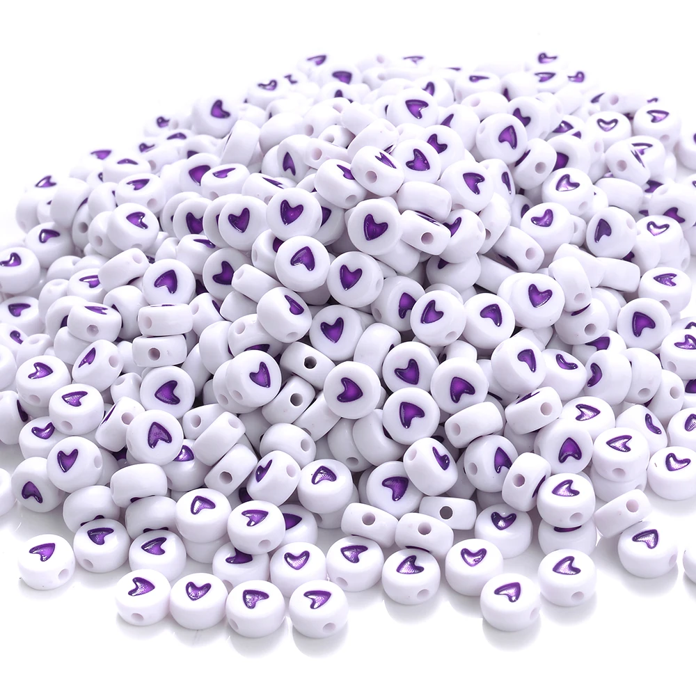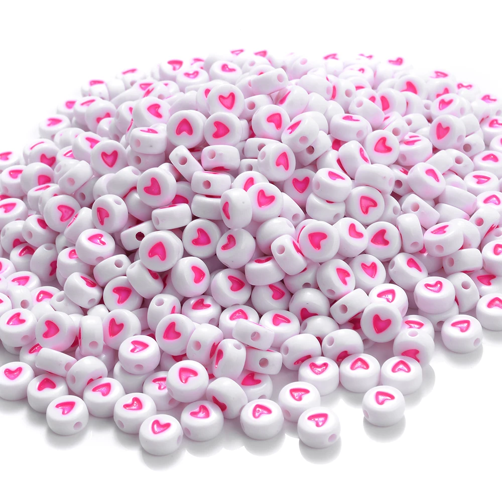 7mm Heart Acrylic Spacer Beads Mixed Flat Round Charms Love Beads for Making Jewelry Diy Handmade Bracelet Accessories