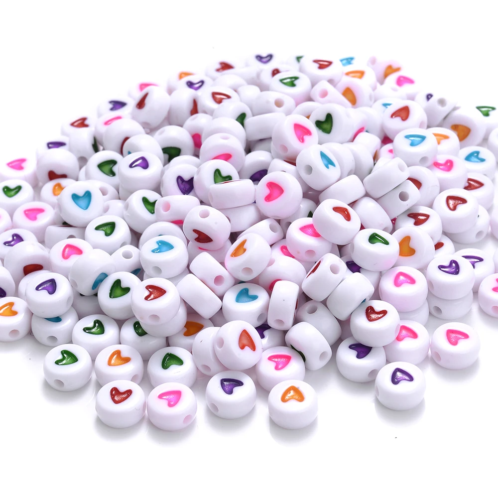 100pcs 7mm Heart Acrylic Spacer Beads Mixed Flat Round Charms Love Beads for Making Jewelry Diy Handmade Bracelet Accessories