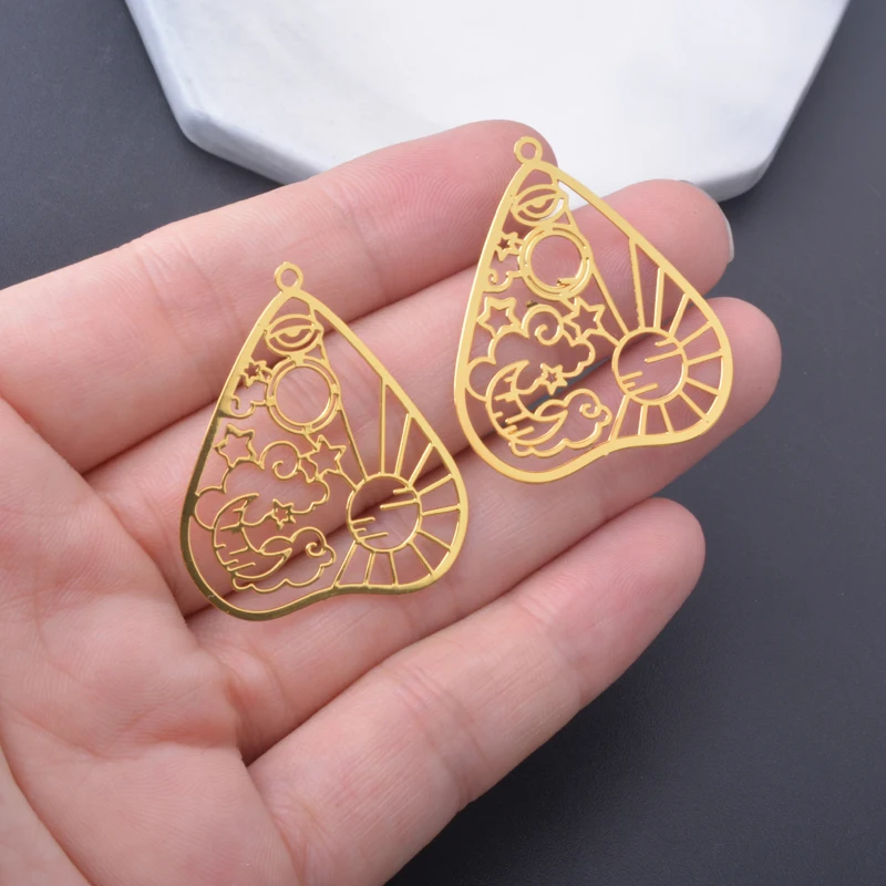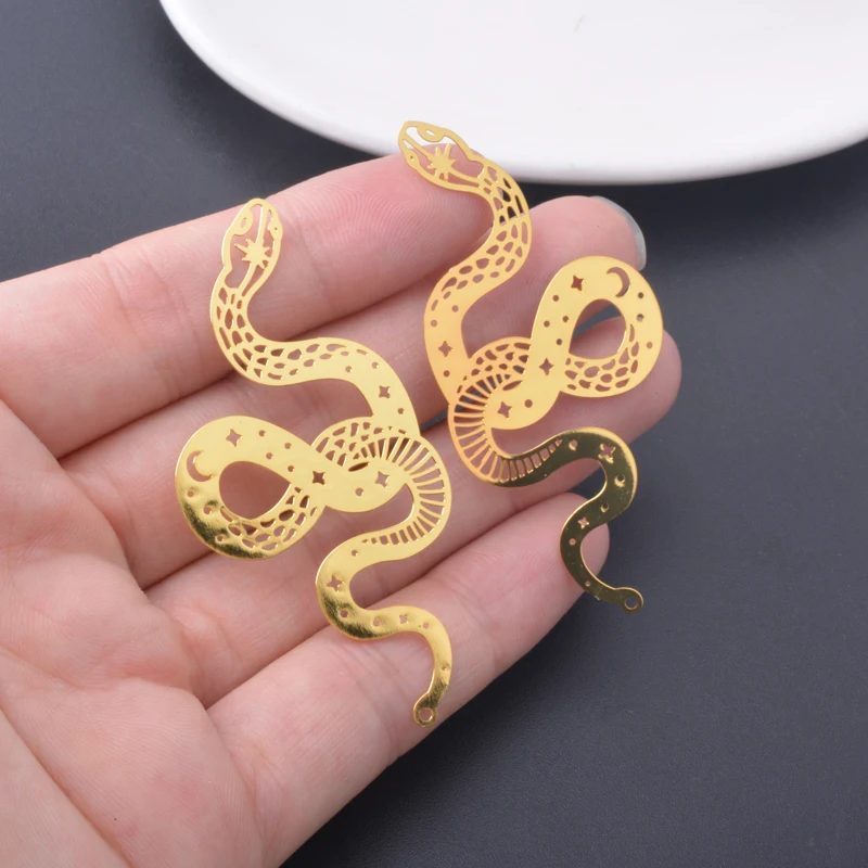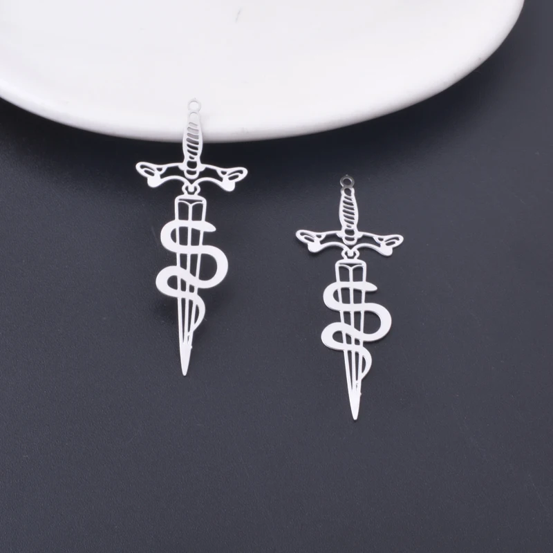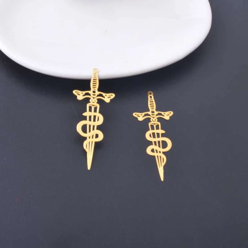 10pcs Brass Filigree hollow out Golden Sword Snake Heart mushroom Charms Stainless steel Jewelry Pendant