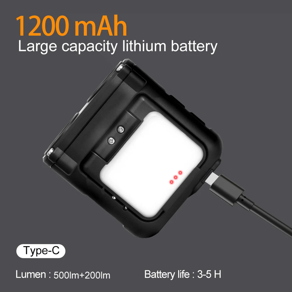 4. Long-lasting Battery Life: Equipped with a high-capacity 1200mAh lithium battery, this headlamp offers an extended runtime, ensuring you won’t be left in the dark when you need it most. The Type-C interface enables quick charging in just 2 minutes, providing even more convenience.