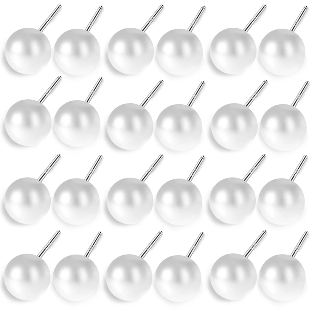 12pairs White Simulated Pearl Earrings for Women Girls Earring Jewelry on Ear Ball Stud Earrings 8mm Pearls Bijouteria Brincos