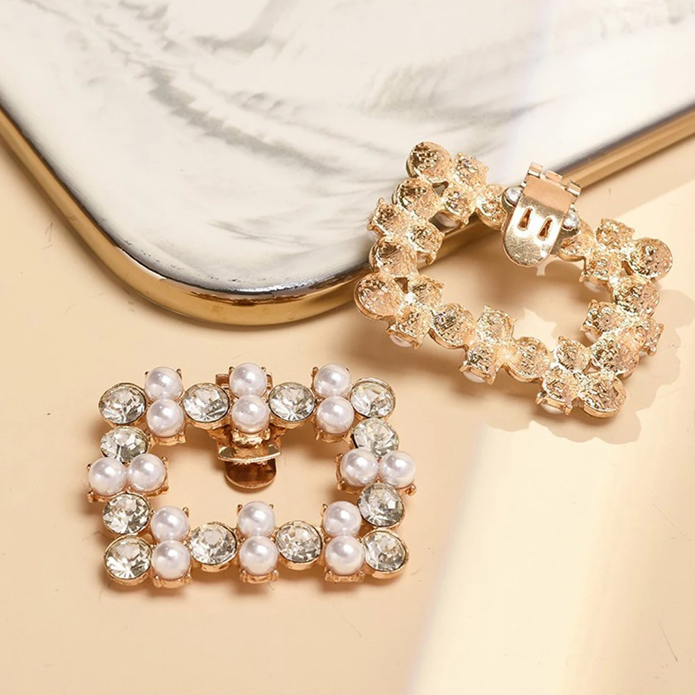 Shiny Decoration Clips Shoes Decoration Shoe Accessory Shoe Buckle Shoe Clip Women Bride High Heel Wedding Pearl Rhinestone