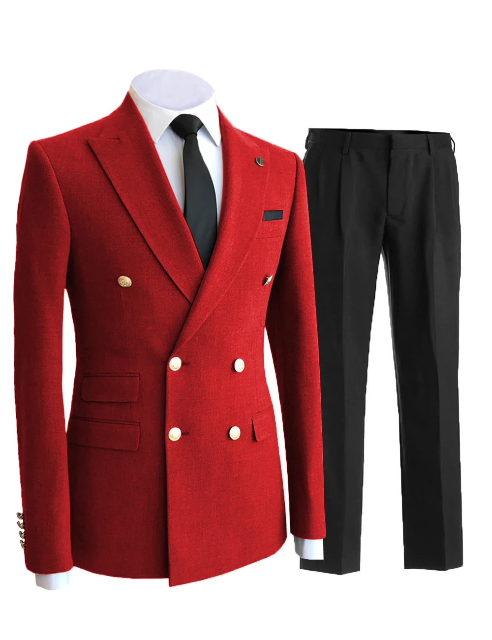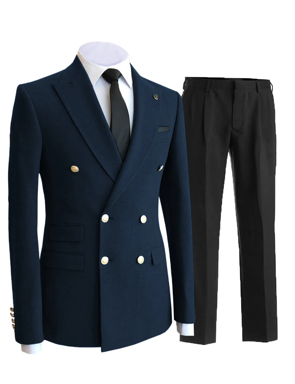 2 Pieces Men’s Suit 2023 New Double Breasted Jacket Notch Lapel Slim Fit Casual Tuxedos For Wedding(Blazer+Pants)