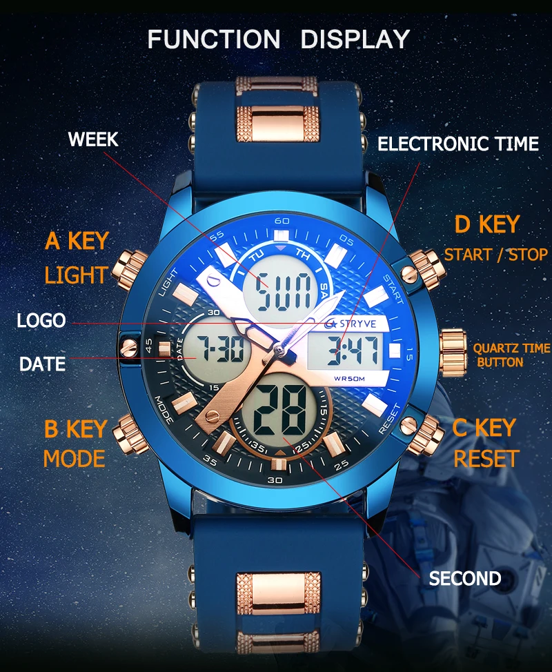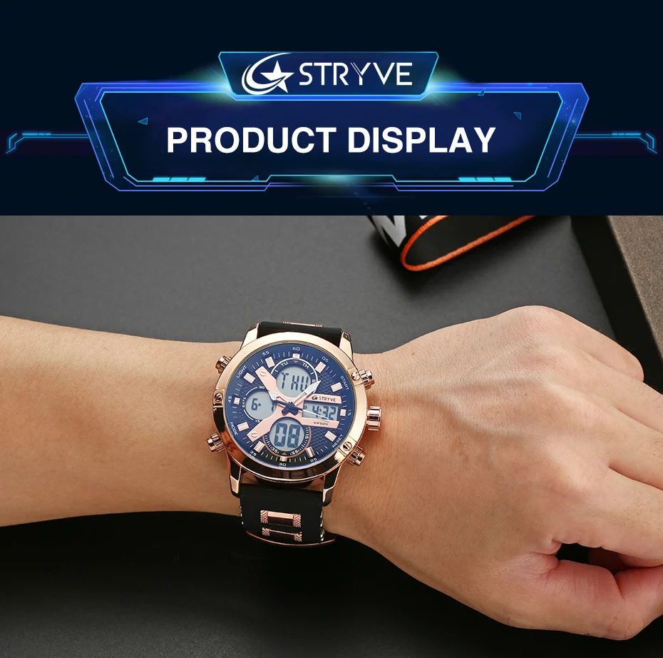 2020 STRYVE New Multi-function LED Digital Sports Watch Men Analog 50M Waterproof Wristwatches Chronograph Relogio With Gift Box