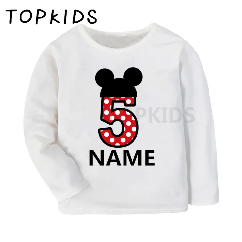 2021 Boys Girls Happy Birthday Number 1~9 Bow Mouse Print Cartoon T shirt Kids Long Sleeve T-shirt Baby Funny Clothes,LKP2416