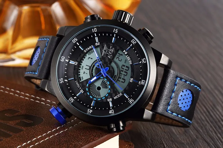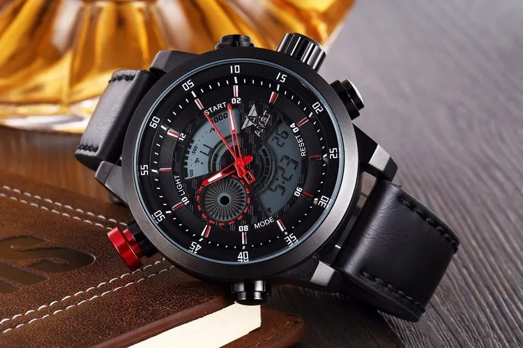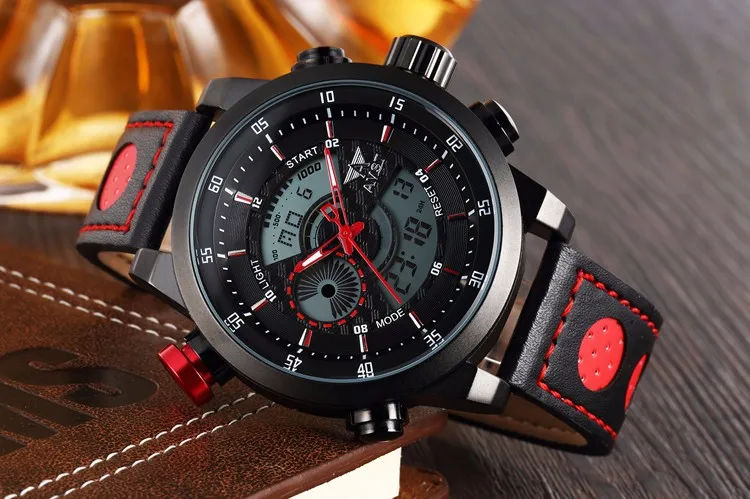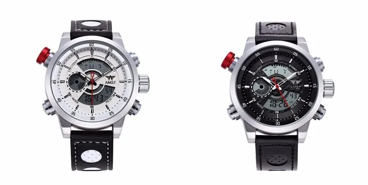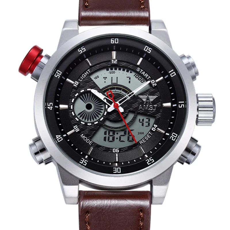 2022 NEW AMST Luxury Brand Men’s Quartz LED Watches Men Fashion Casual Sports Clock Genuine Leather Military Wrist Watch