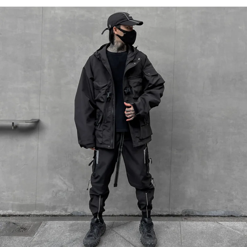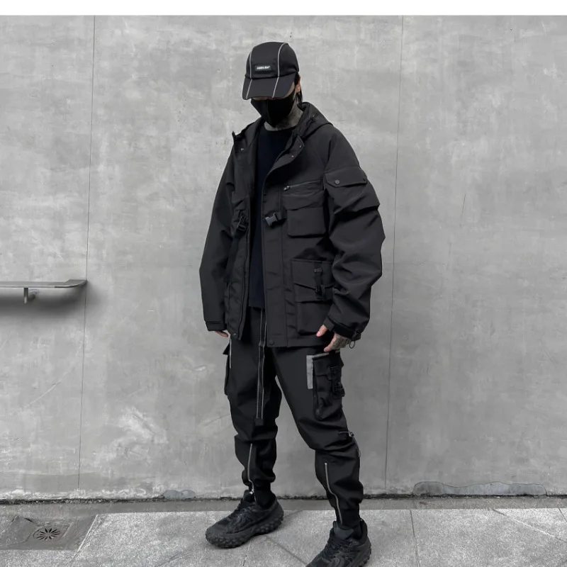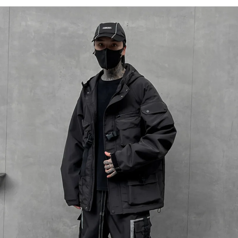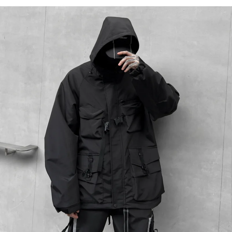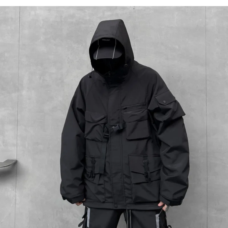 2023 Autumn Korean style Personalized multi pockets design hooded cargo jackets men casual loose tooling jackets coat men,M-XXL
