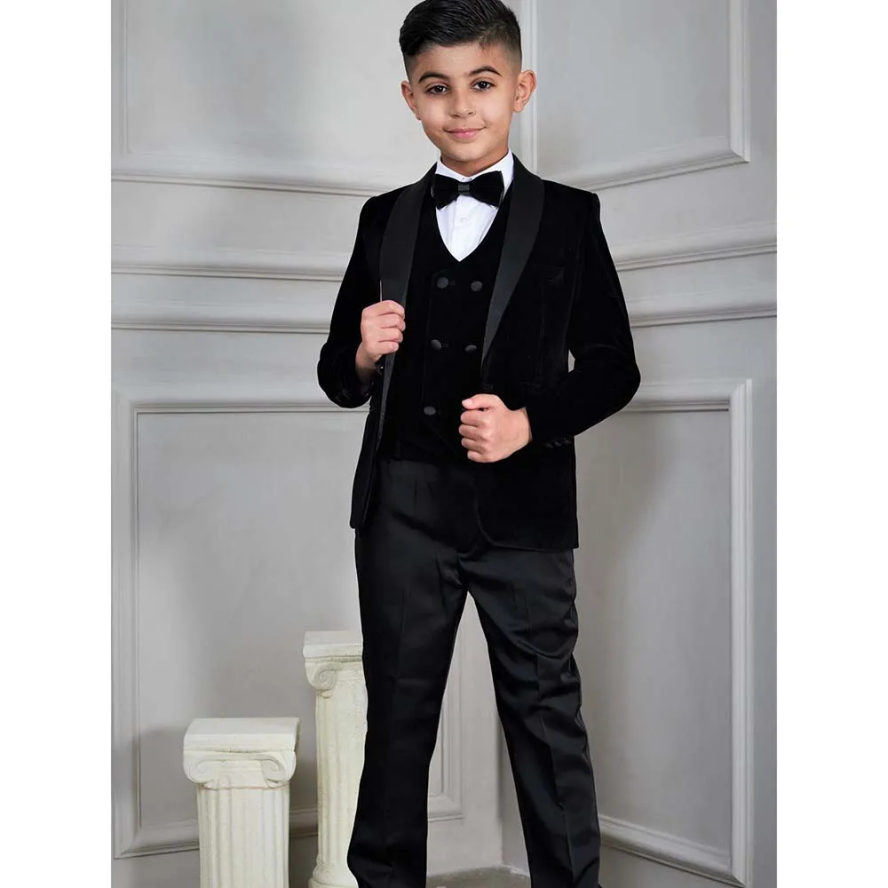 2023 Formal Boys Suits for Weddings Dress Elegant Children School Uniform Velvet Kids Party Costumes Tuxedo Clothes Sets