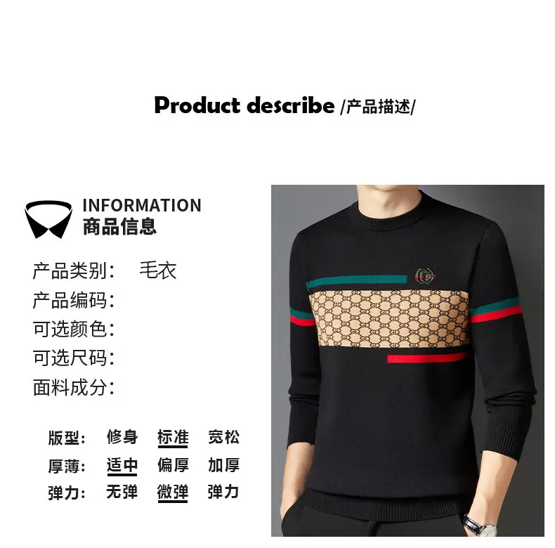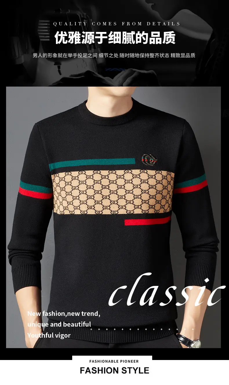 2023 New Autumn High End Mens Knit Sweater Top Designer Men Classic Casual Wool Pullover Fashion Brand Soft Warm Winter Clothing