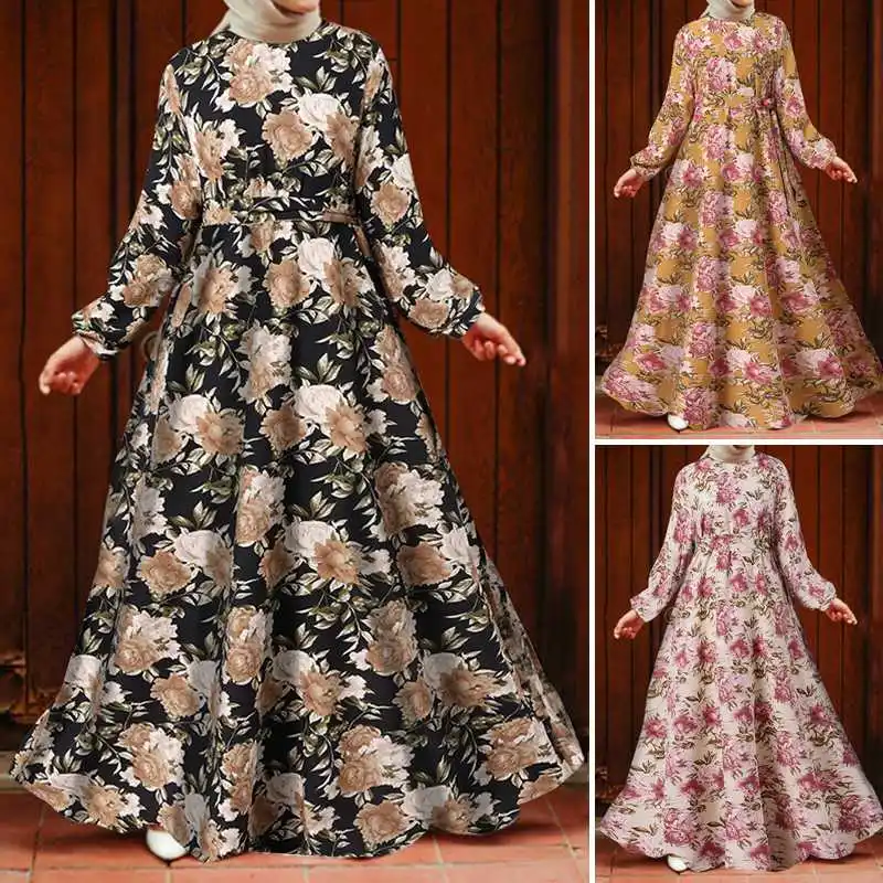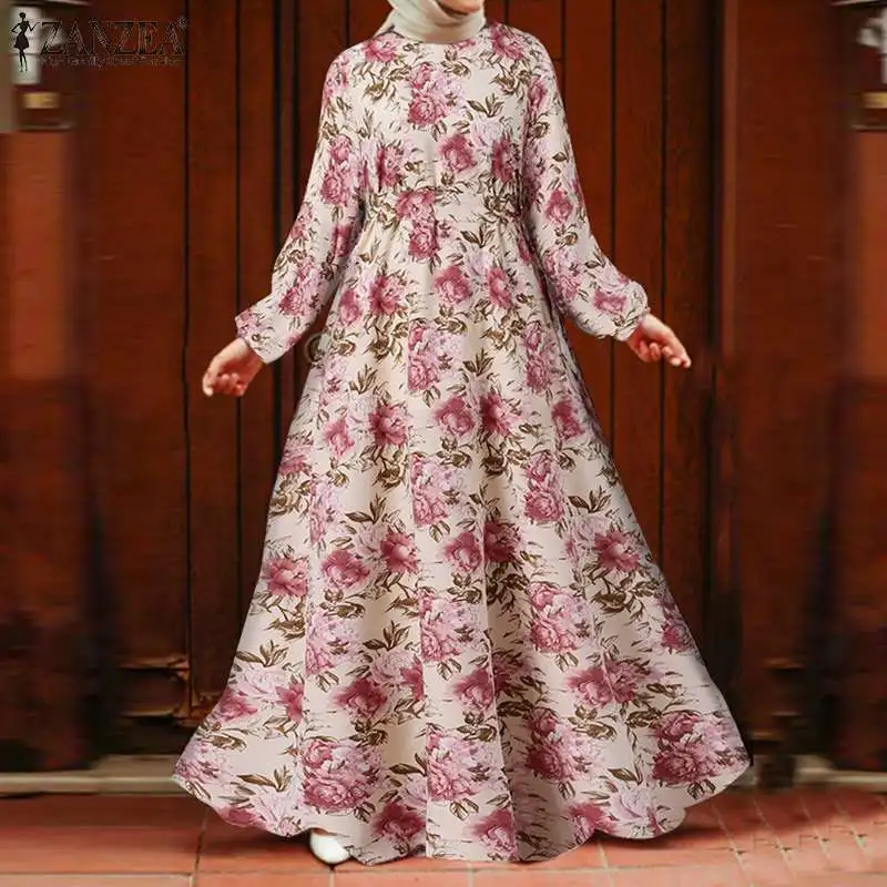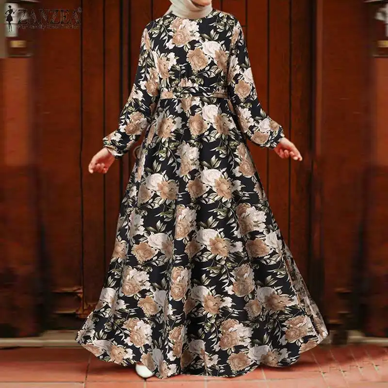 2023 ZANZEA Elegant Muslim Printed Dress Women Floral Sundress Puff Sleeve Maxi Vestidos Female Marocain Turkish Robe Femme 7