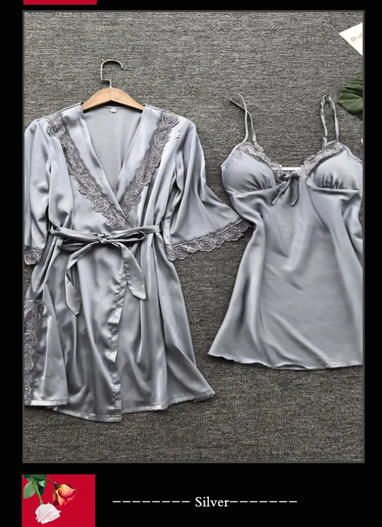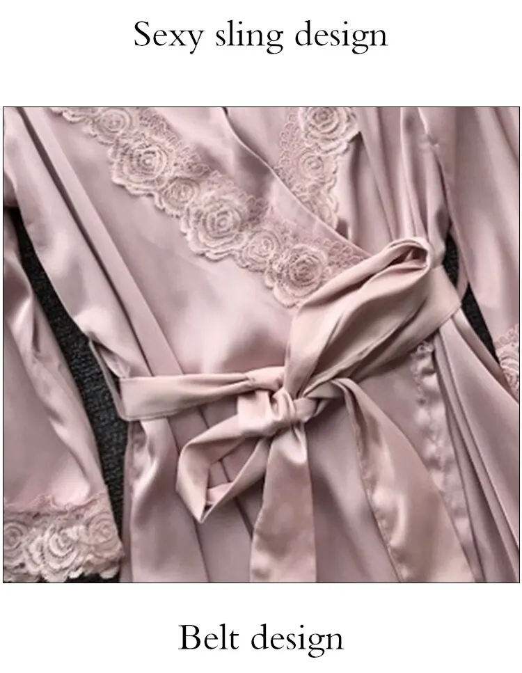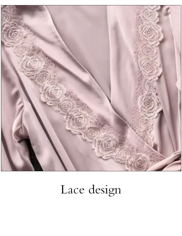 2PCS Leepwear Female Pajamas Set Satin Home Pyjamamas Lace Robe Sleep Suit V-Neck Wedding Nightwear Wear Nighty&Rob
