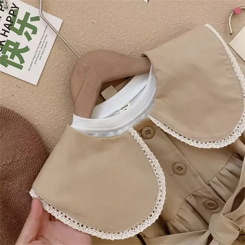 3-11Y Children Trench Coat Autumn Girls Jacket Long Single Breasted O-neck Solid Loose Casual Kids Windbreaker Clothes Hw38
