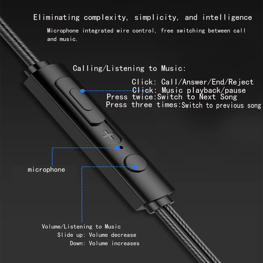 3.5mm Wired Headphones In Ear Headset Wired Earphones with Mic Bass Stereo Earbuds Sports In-line Control For Phones