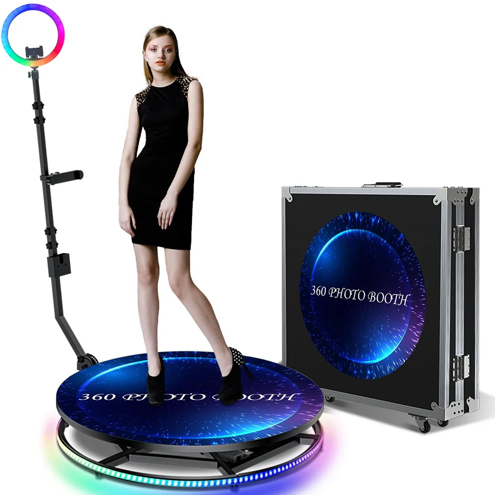 The 360 photo booth comes with multiple brackets, which support placing phone, DSLR camera, GoPro and tablet. Suitable for people to use different shooting devices in various occasions ( phone, DSLR camera, GoPro and tablet are not included ).