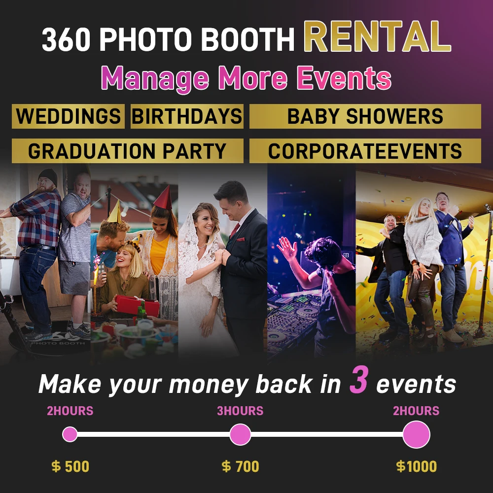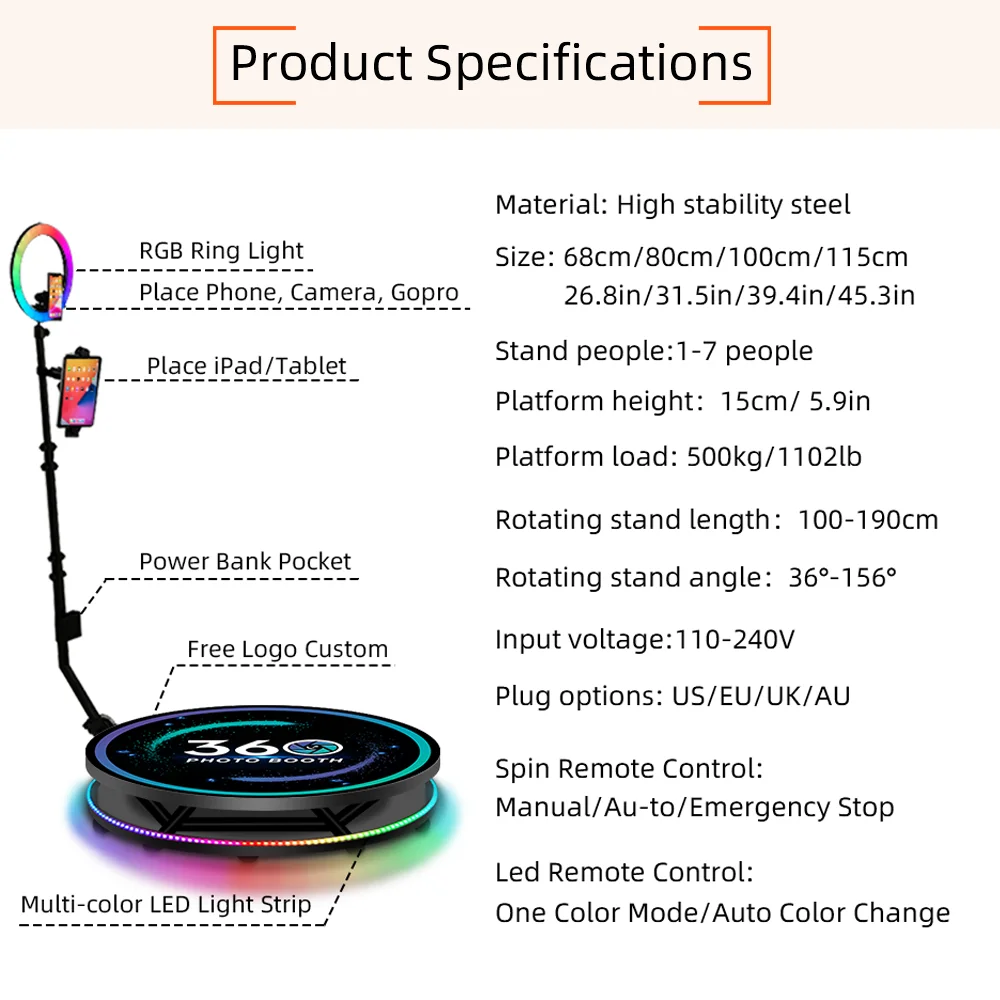 360 Photo Booth for Party Slow Motion 360 Degree Rotating Picture Selfie Magic 360 Automatic Video Booth for Wedding Event