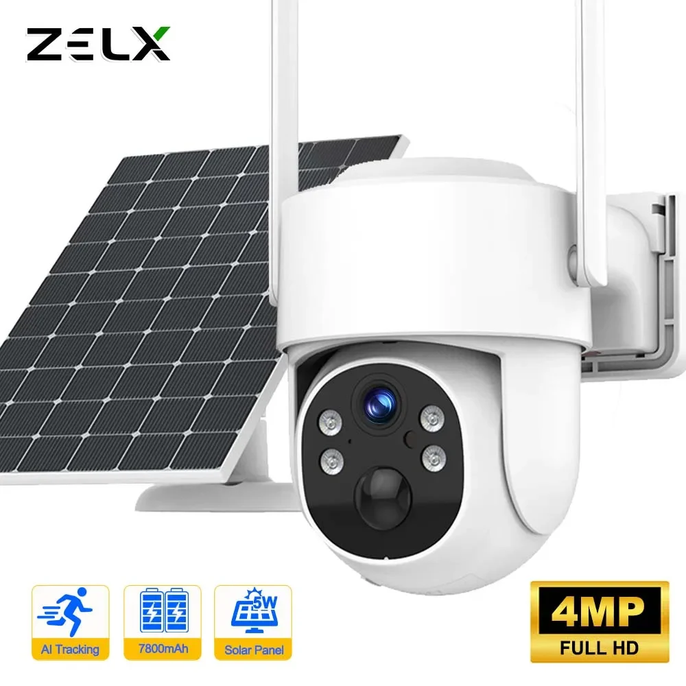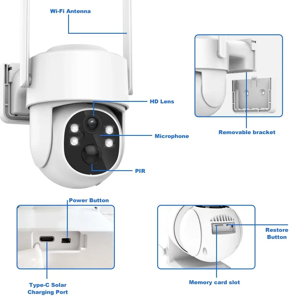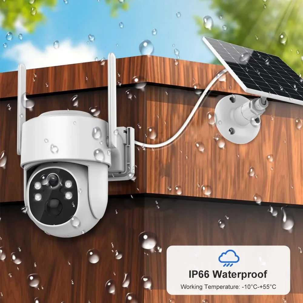 4MP Solar WiFi IP Camera 2K HD Wireless Outdoor Security PTZ Cam Built-in Battery PIR Human Detection Video Surveillance CCTV