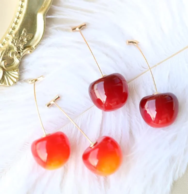 Korean Fashion Creative Red Cherry Earrings for Women Fruit Statement Dangle Earring Unique Fun Wedding Party Jewelry Gift Mujer