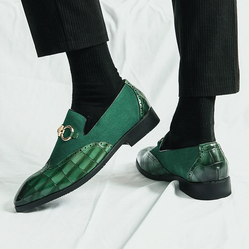 Autumn Luxury Brand Black Loafers Men Slip-On Metal Buckle Formal Business Leather Shoes Scrub Moccasin Soft Sole Wedding Shoes
