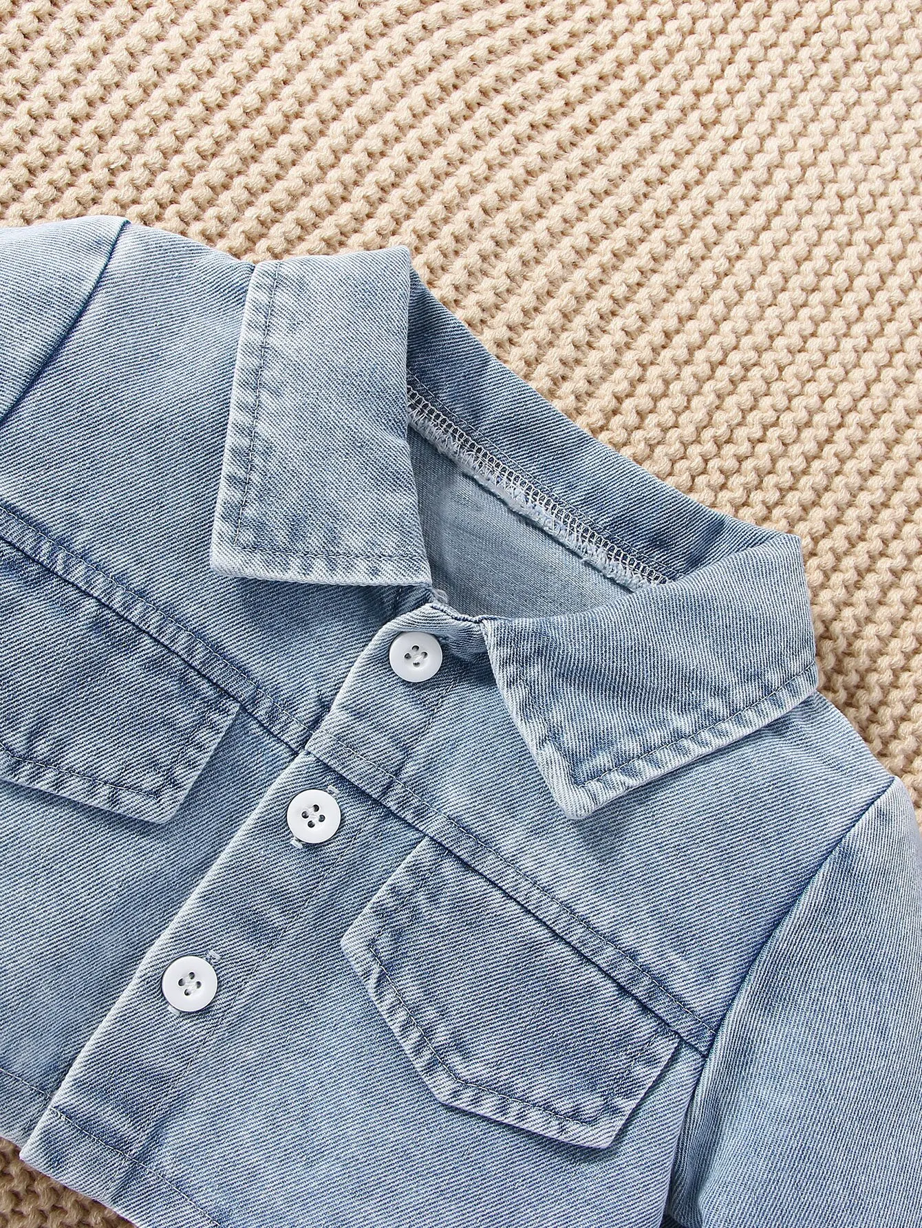 Baby Spring and Autumn Denim Coat Floral + Slip Skirt Two-piece Casual Female Newborn Street Fashion Suit Outdoor Vacation Wear