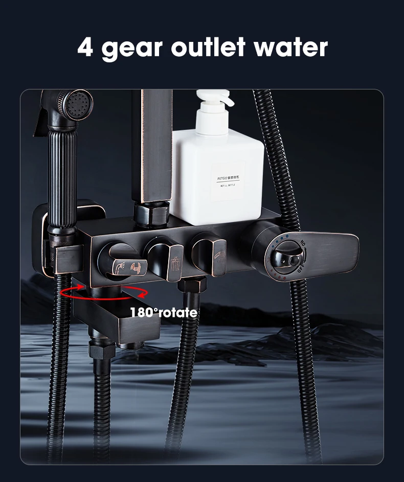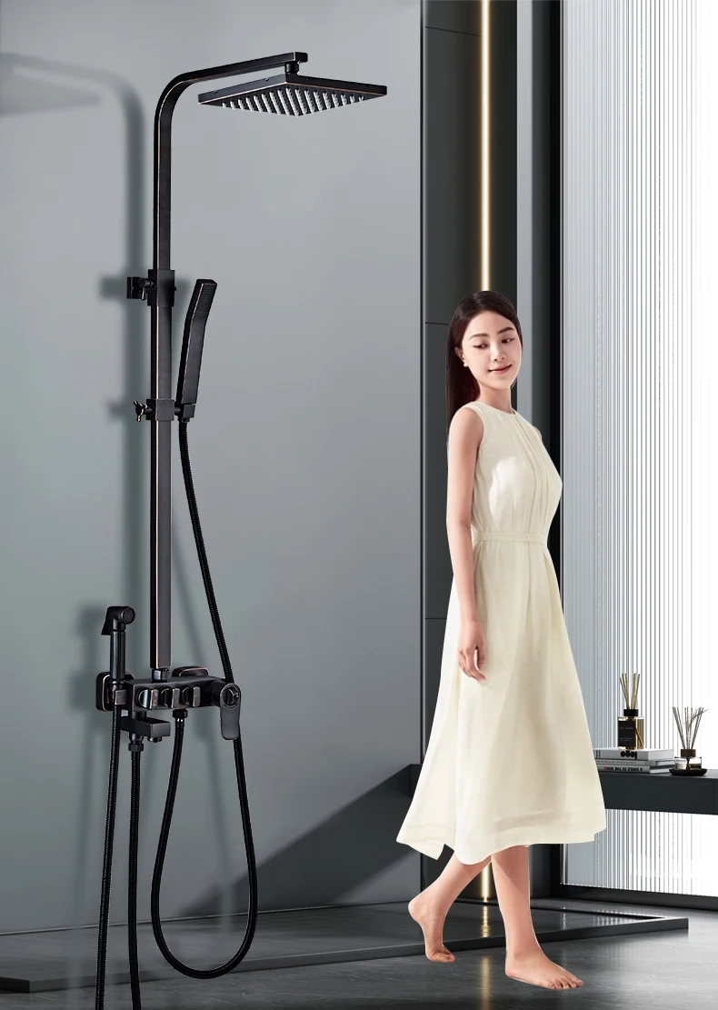 Black/Retro/Gold/Chrome Plated Copper Bathroom Household Shower Digital Display Intelligent Constant Temperature Shower
