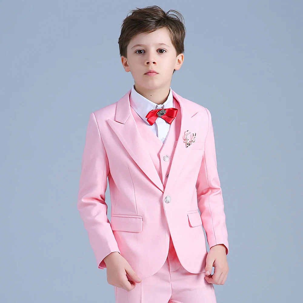 Boys’ Suit Three Piece Set (Jacket+Pants+Vest) 2023 New Fashion High-end Pink Handsome Casual Formal Occasion Clothing