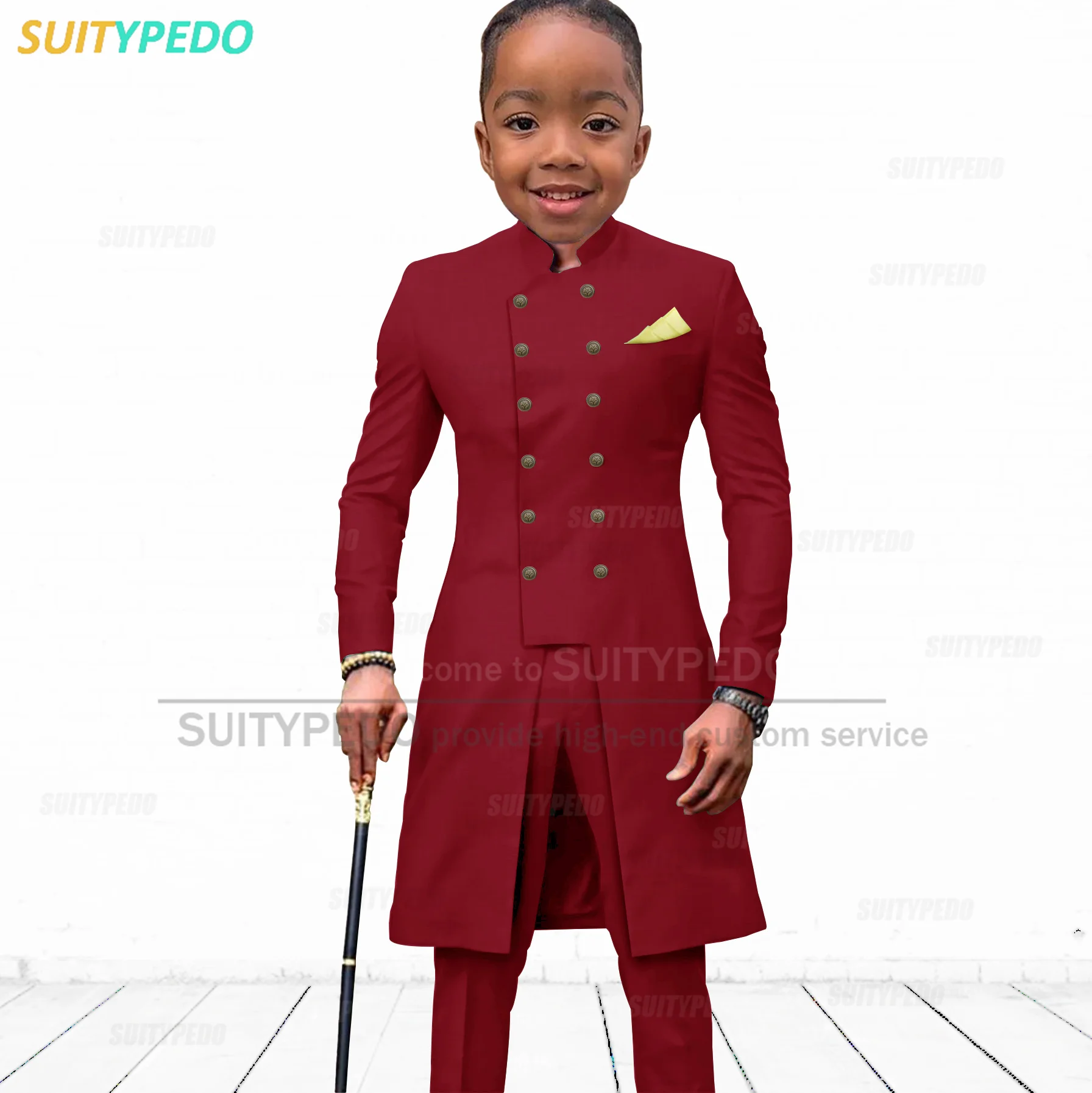 Burgundy Formal Boys Suit For Wedding Children Gold Party Blazers Pants Sets Outfit Kids Costume Gentlemen Prom Tuxedos 2 PCS