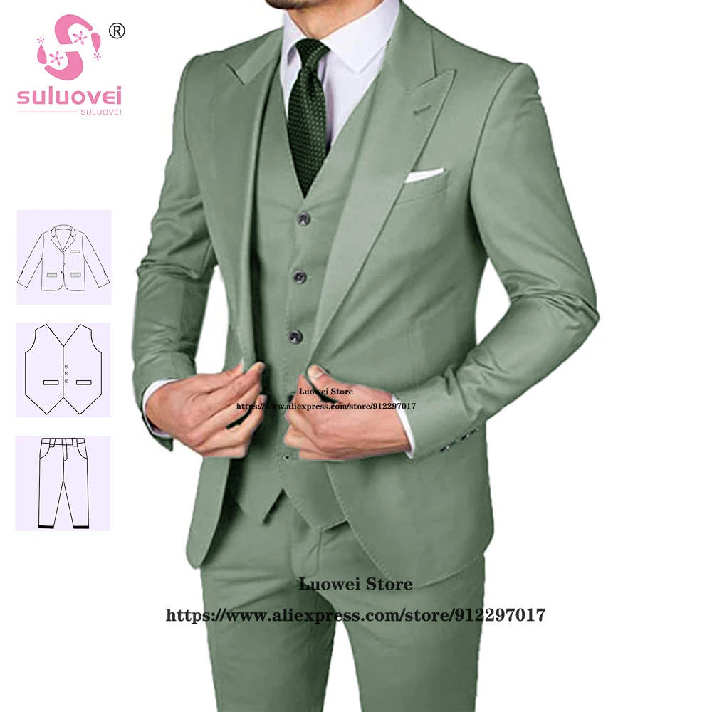 Fashion Groom Wedding Suits For Men Slim Fit 3 Piece Pants Set Formal Groomsmen Dinner Prom Peaked Lapel Tuxedo Blazer Masculino