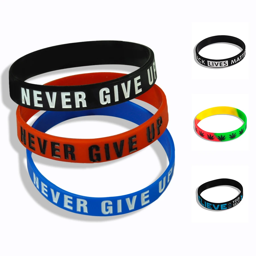 Fashion Punk “The Road to Dreams” “Never Give Up” Inspirational Silicone Rubber Bracelet Elastic Band Bracelet Gift