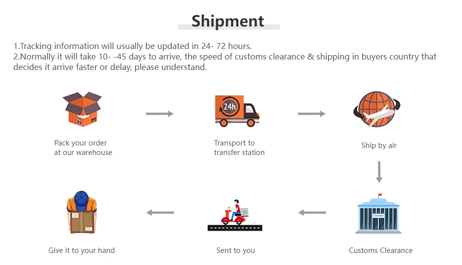 Packages from our warehouse in China will be shipped by ePacket or EMS depending on the weight and size of the product. Packages shipped from our US warehouse are shipped through USPS.