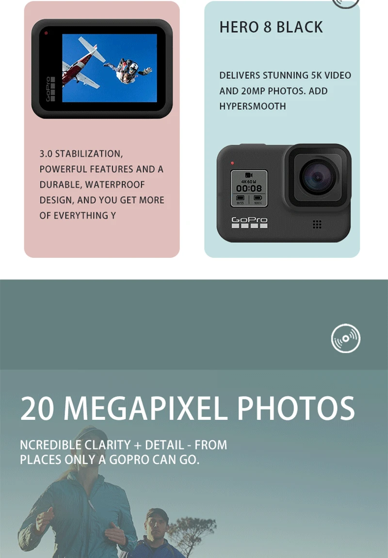 GoPro HERO8 Black Action camera professional UHD 4K Video go pro digital cameras Climbing skiing kayaking Slow Motion Webcam
