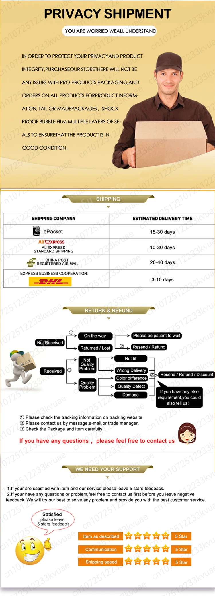 *You can submit refund requests within 15 days after the guaranteed period for delivery (45 days) has expired. You can do it by sending a message on page.
