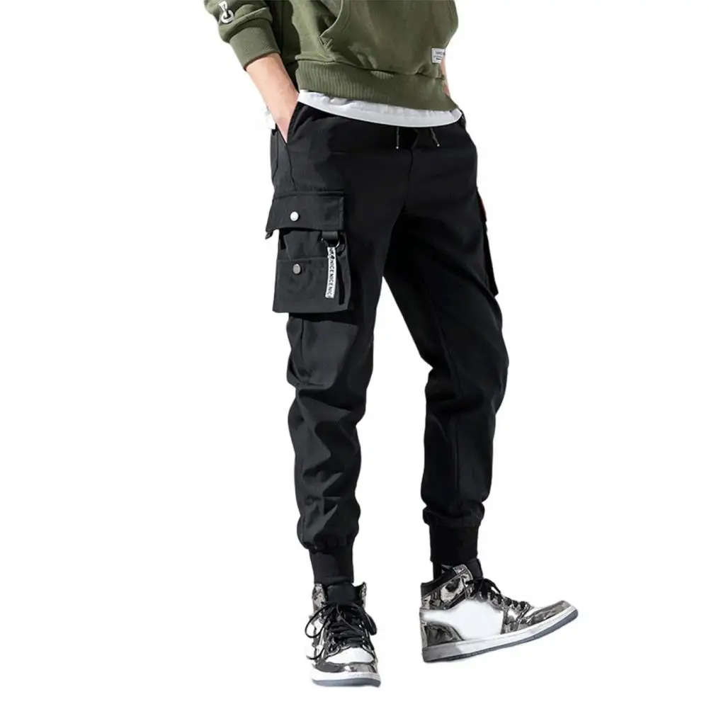 Harajuku Casual Cargo Pants for Men Black Wear-resistant Jogger Trousers Multi Pockets Male Slim-fit Pant Streetwear Japanese