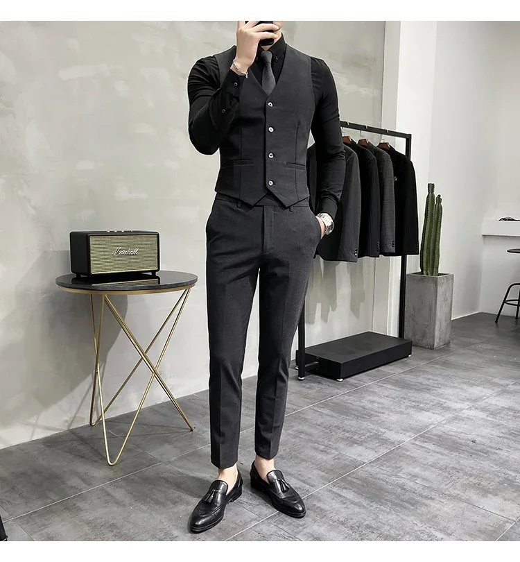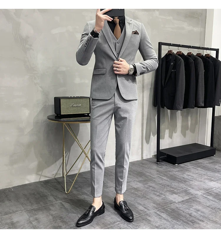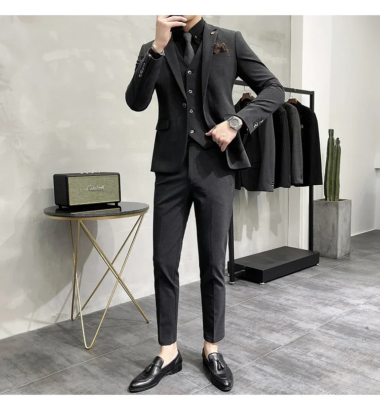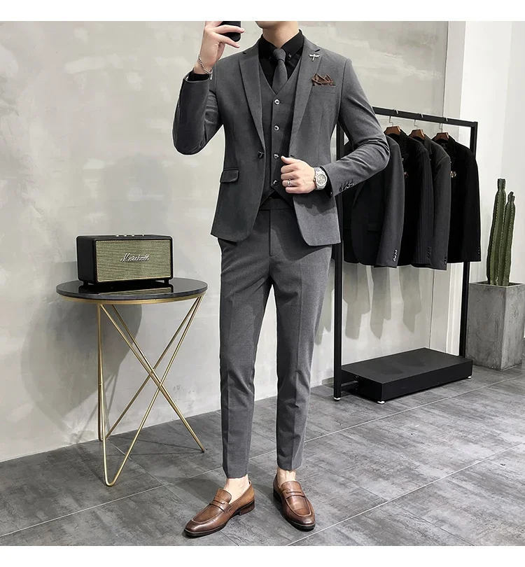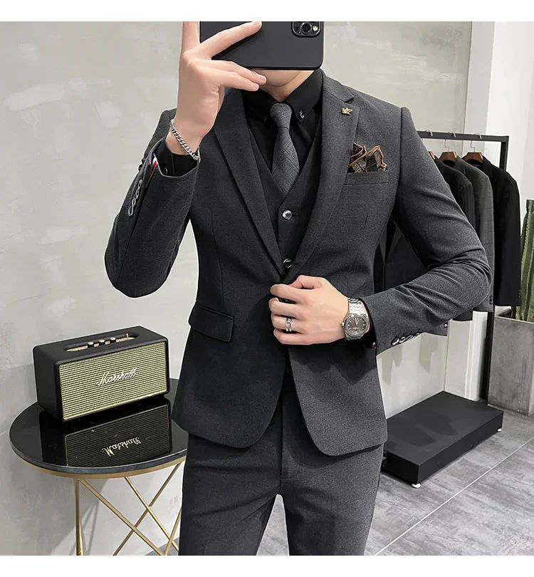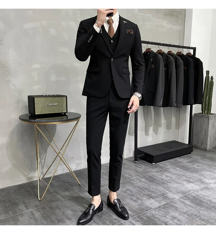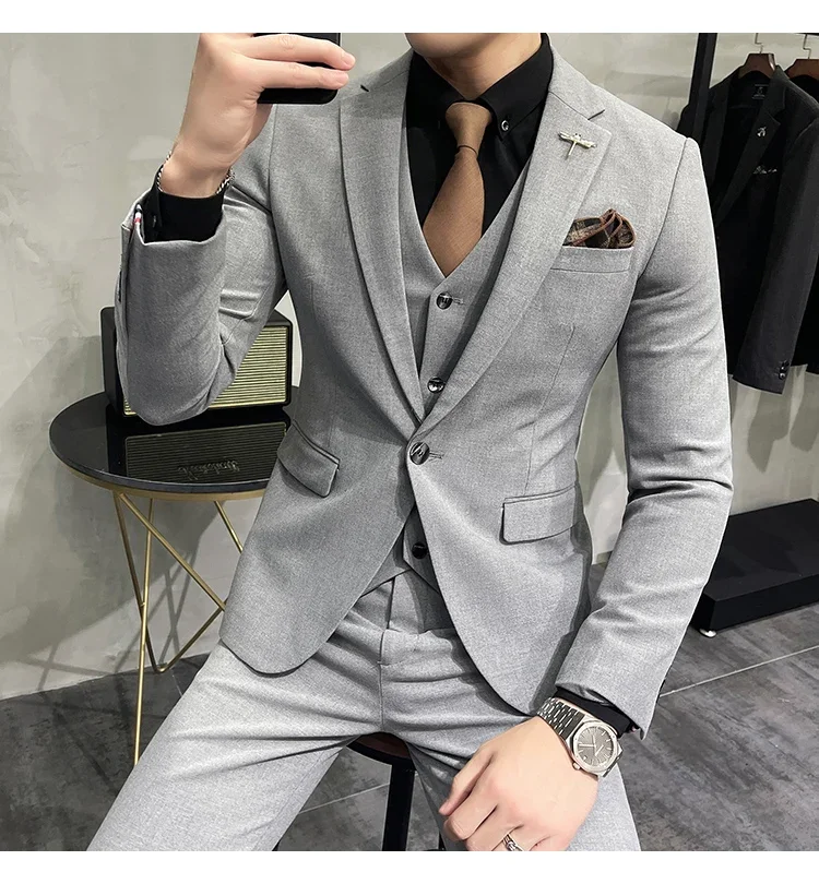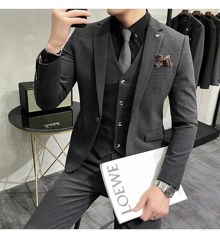 High-end Brand Boutique Fashion Solid Color Mens Casual Business Suit 3Piece Set Groom Wedding Dress-PDYN