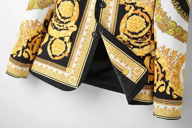 High Quality Male Cargo Jackets Men Autumn Coats Black Gold Floral Print Jackets Casual Blazers Jackets And Coats Blazer Hombre