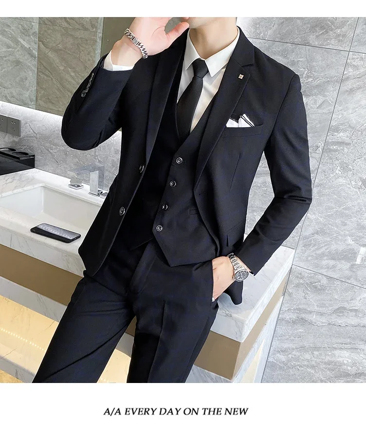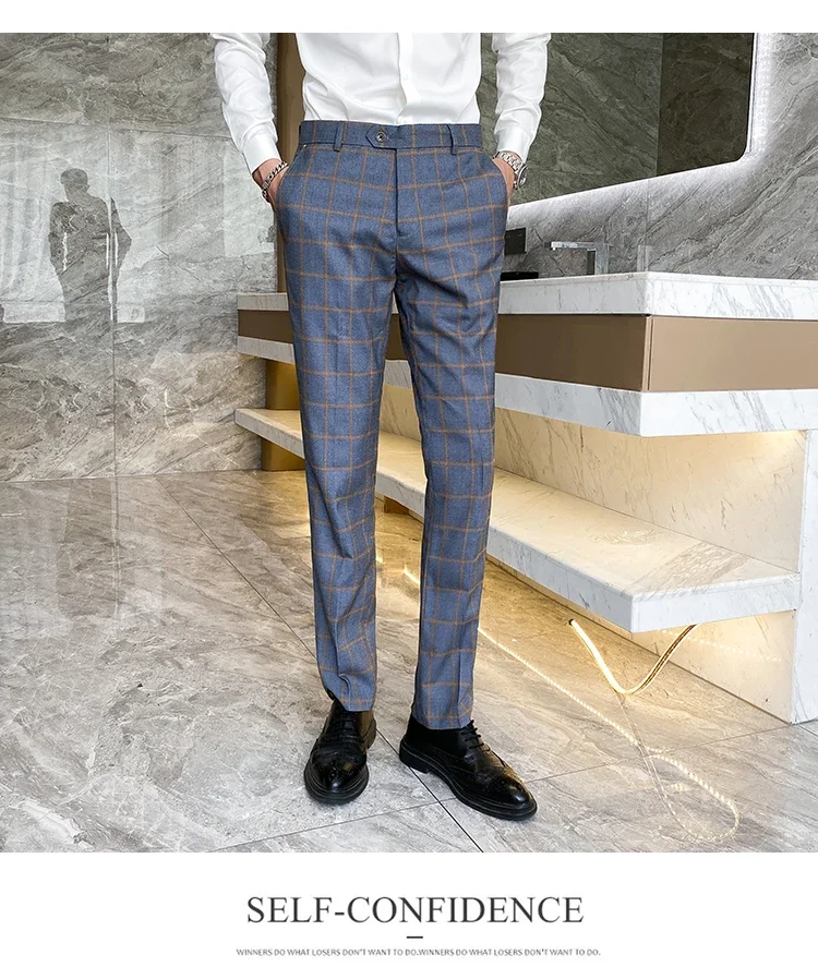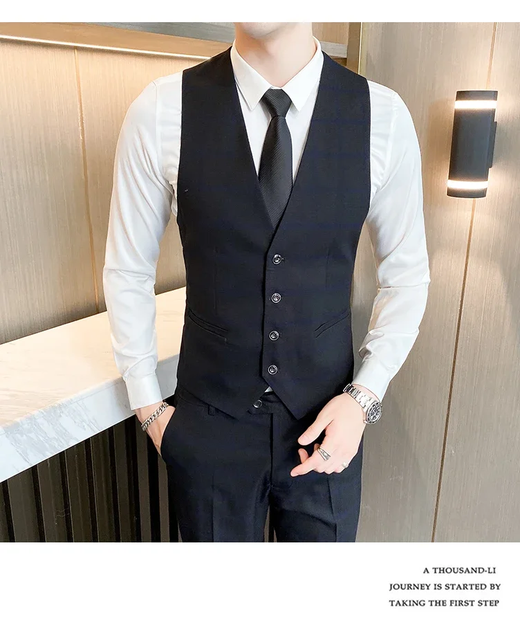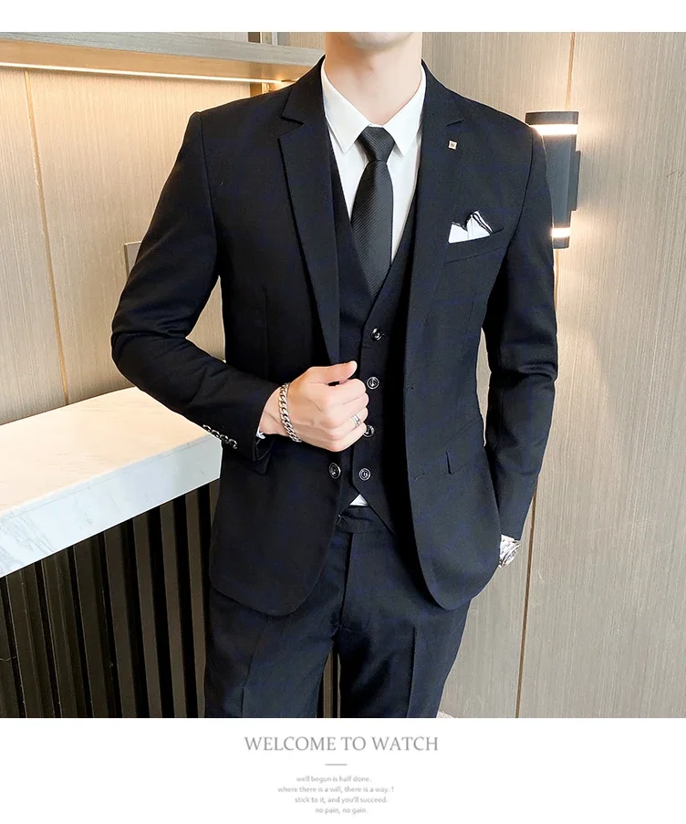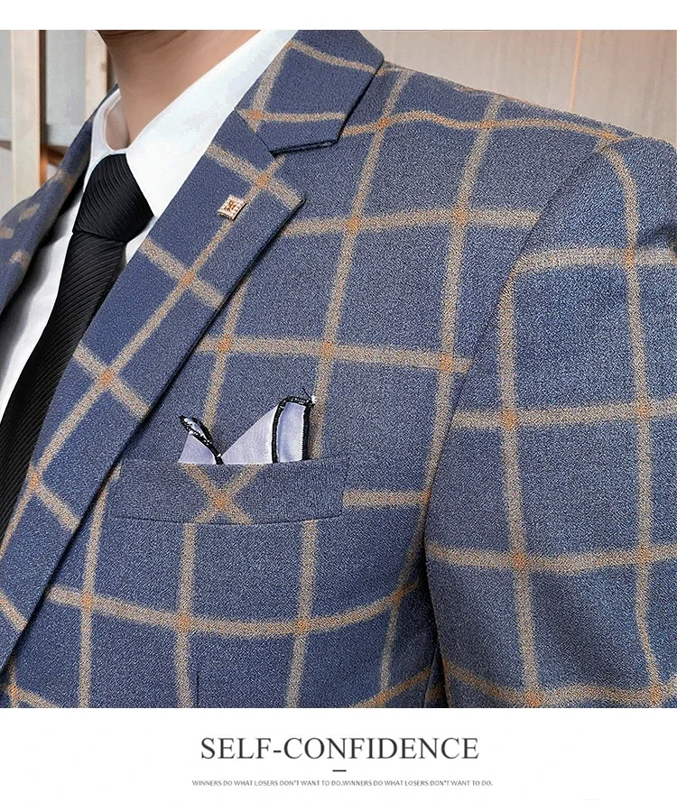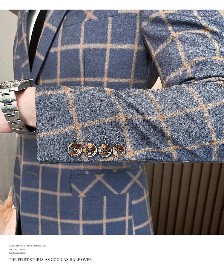 (Jacket+Vest+Pants) Men Dress Suits British 3Piece Men Wedding Suit Autumn Men Business Formal Plaid Suit Male Luxury Slim Dress