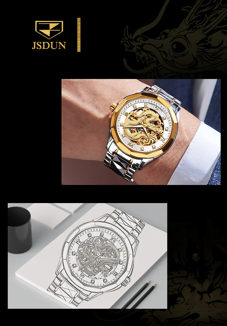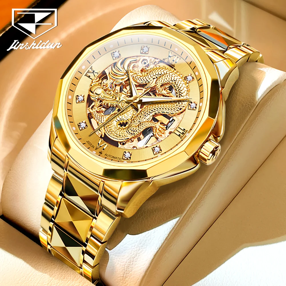 JSDUN Gold Dragon Design Luxury Automatic Mechanical Watch for Men Super Brand Stainless Steel Luminous Waterproof Men's Watch