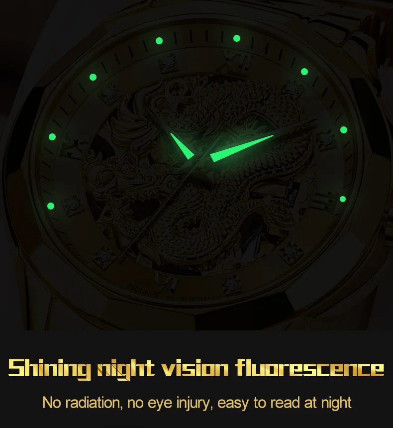 JSDUN Gold Dragon Design Luxury Automatic Mechanical Watch for Men Super Brand Stainless Steel Luminous Waterproof Men’s Watch