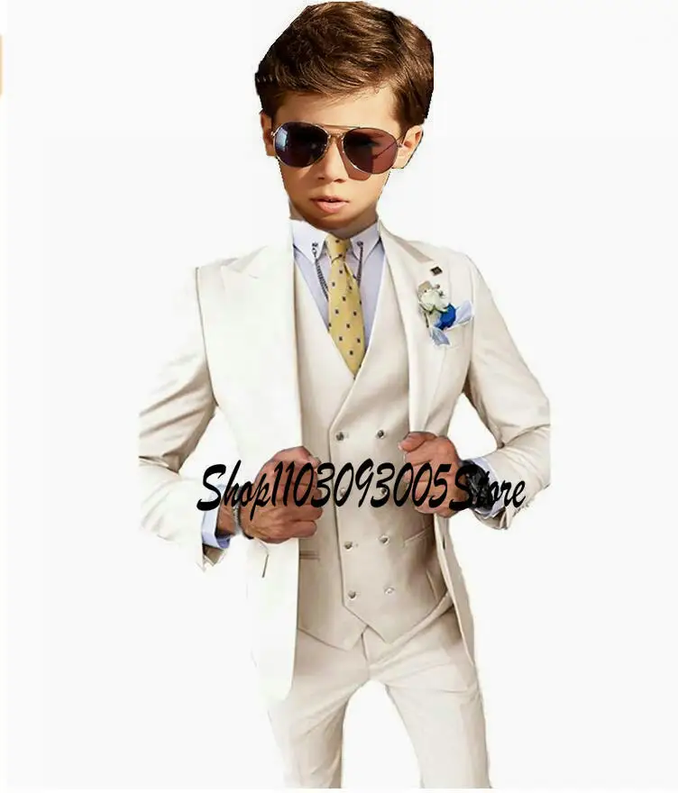 Kids Boys Ivory Blazer Vest Pants 3PCS Set Children Baptism Wedding Prom Suit Baby Boy Elegant Dress Teenager Party Costume