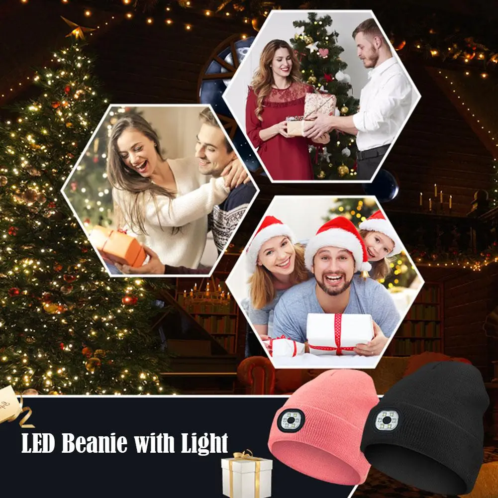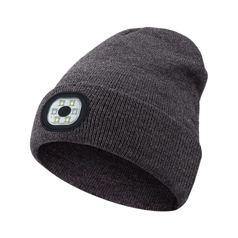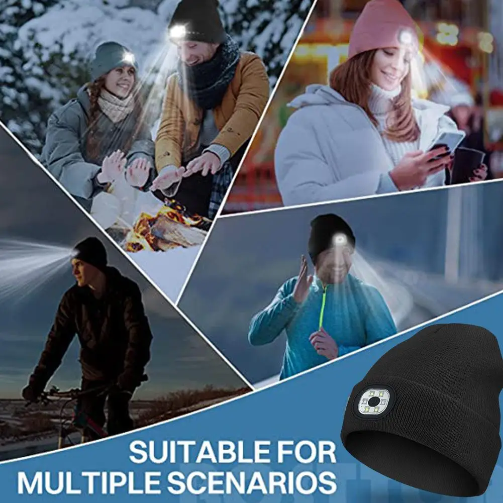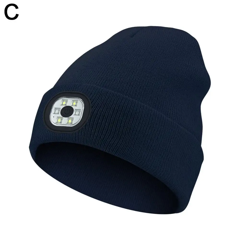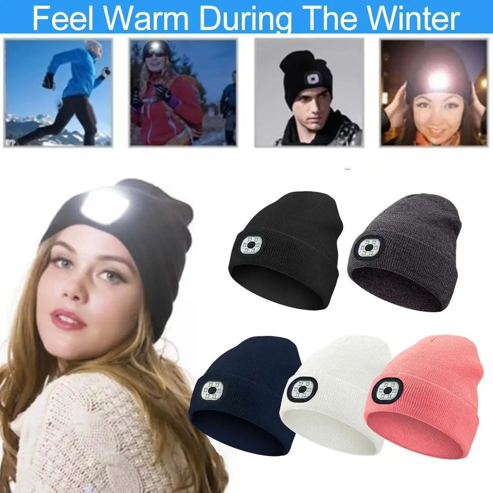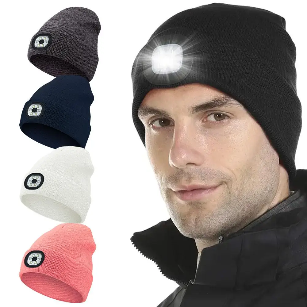 LED Light Beanie Cap Unisex Knitted Beanie With Head Lamp Rechargeable Flashlight Hat Hunting Camping Jogging Fishing Cycling