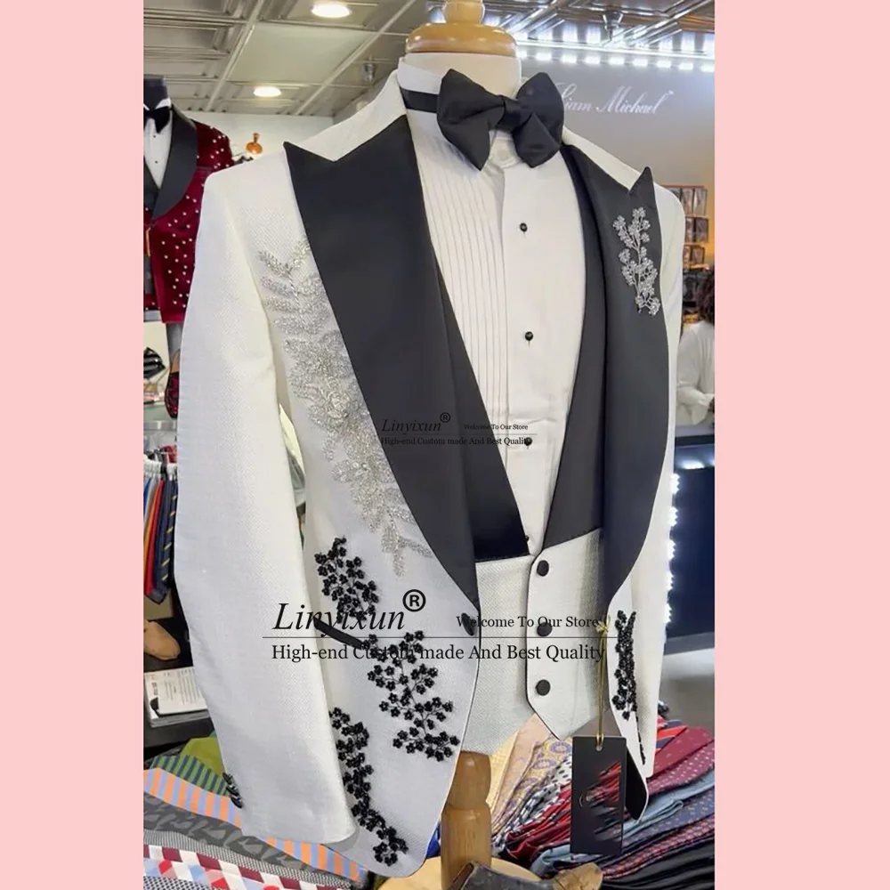 Luxurious Hand Embroidered Men Suits Wedding Prom Groom Tuxedos Dresswear 3 Pieces Bridegroom Prom Blazers Male Bespoke Suit