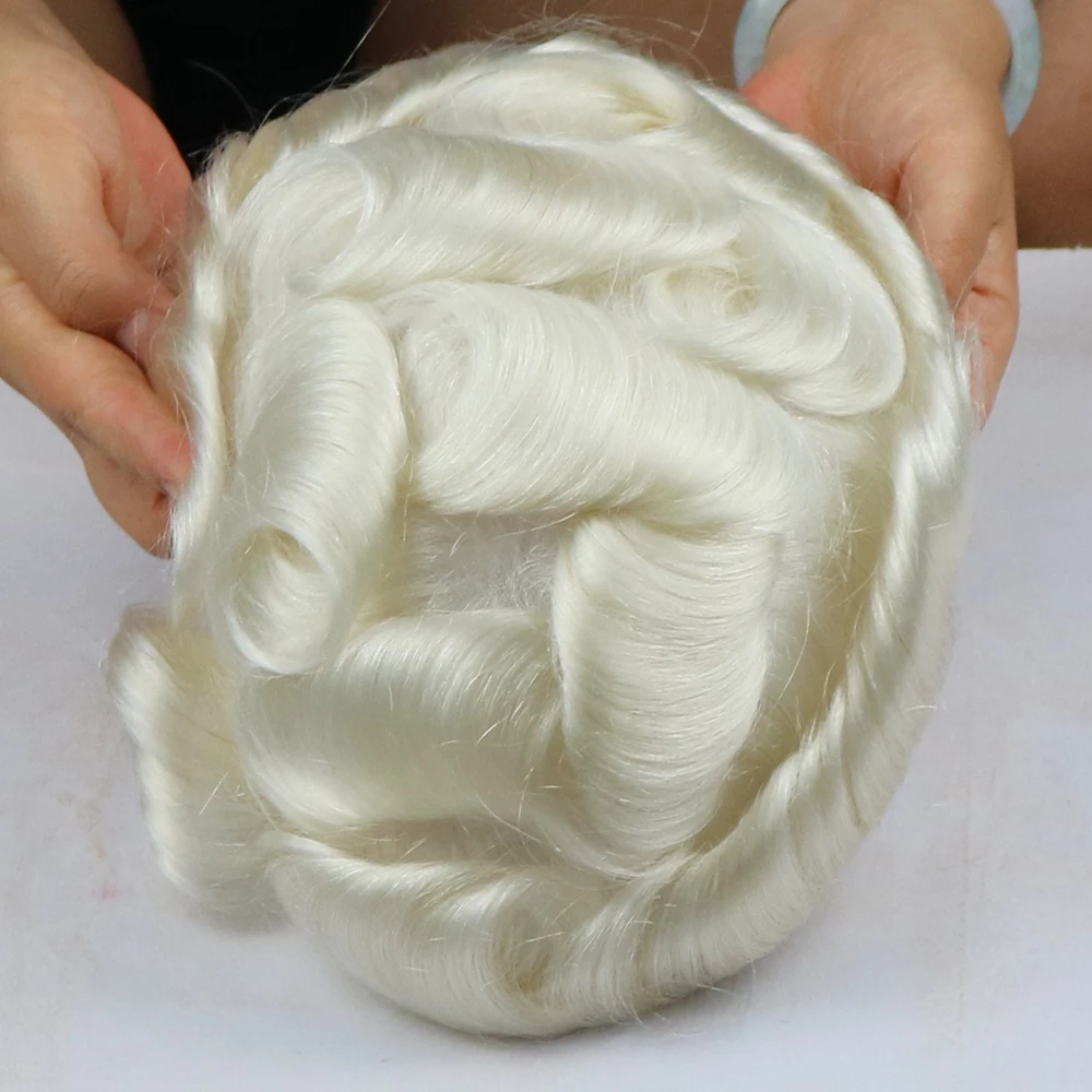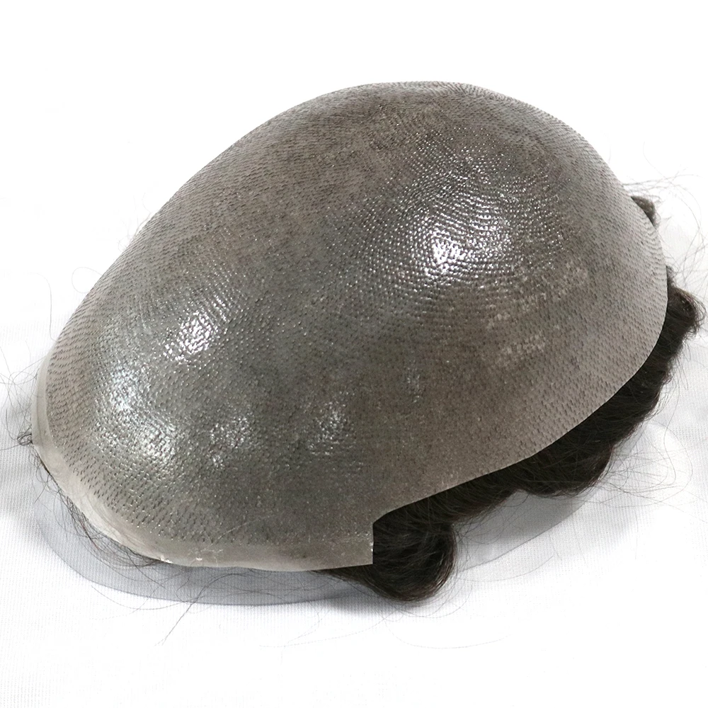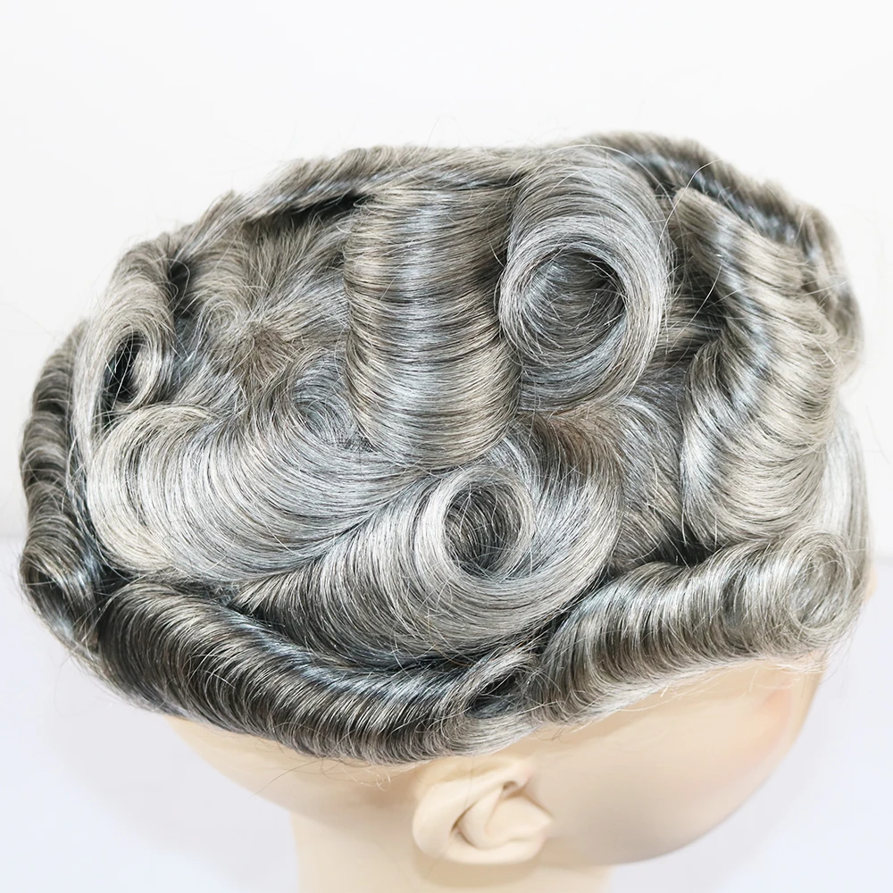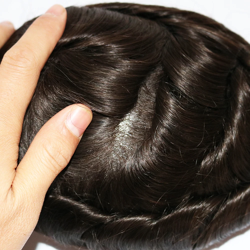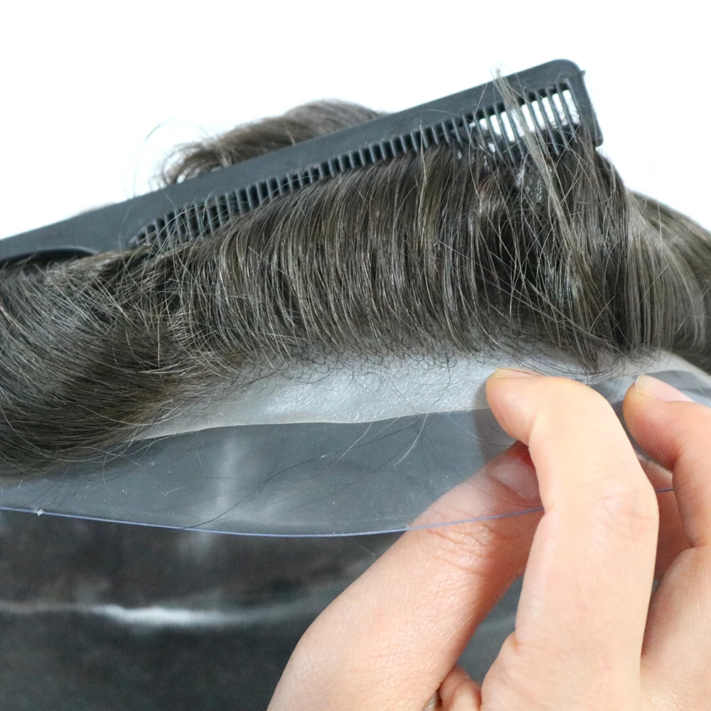 Natural Hairline Men's Toupee Vloop 0.06-0.08mm PU Base Hair Replacement System Straight/Wavy Hair for Options