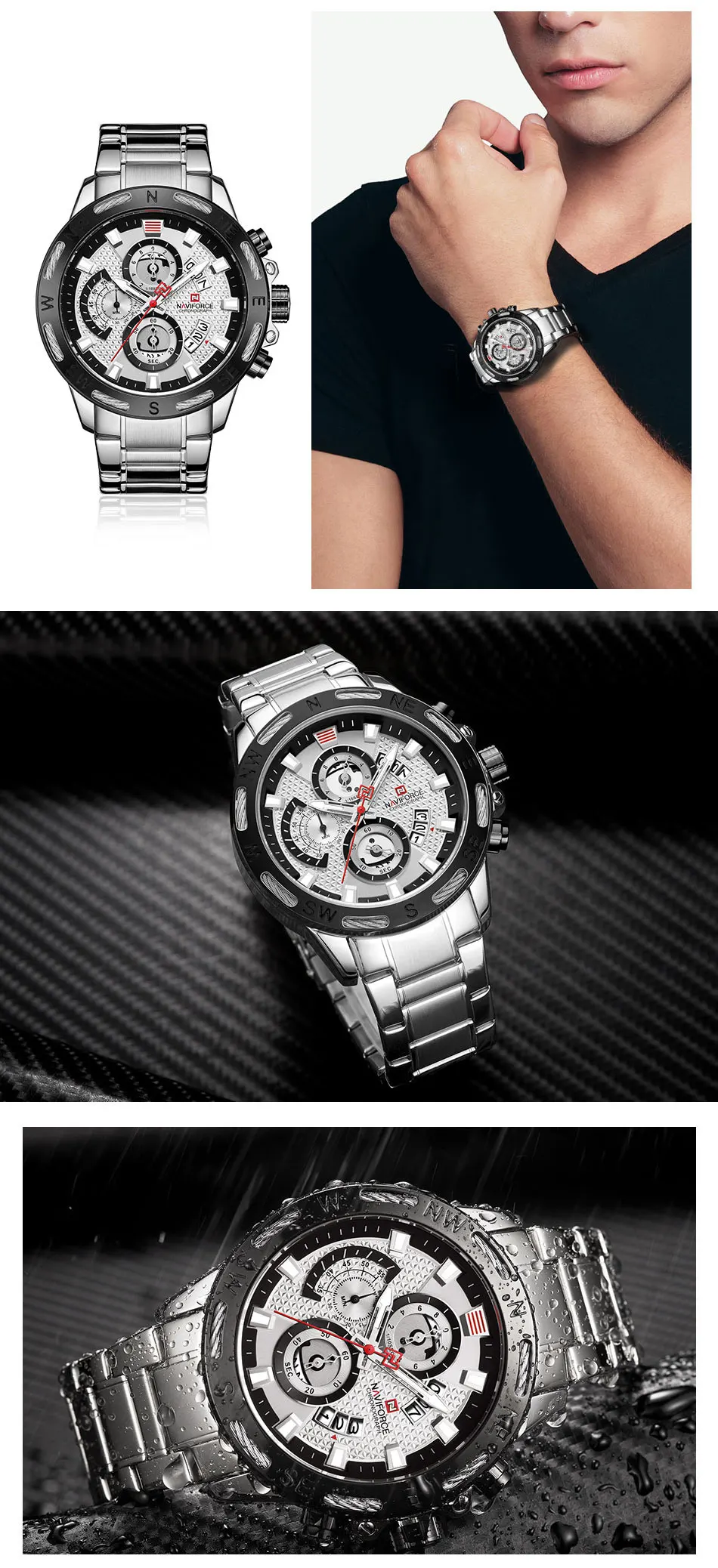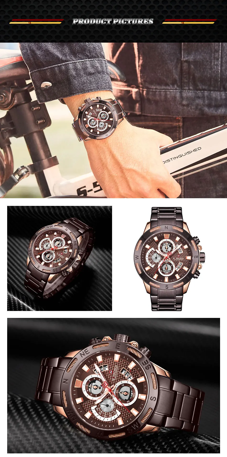 NAVIFORCE Mens Watches Sport Waterproof Stainless Steel Fashion Luxury Gold Watch Date Clock Quartz Wristwatch Relogio Masculino