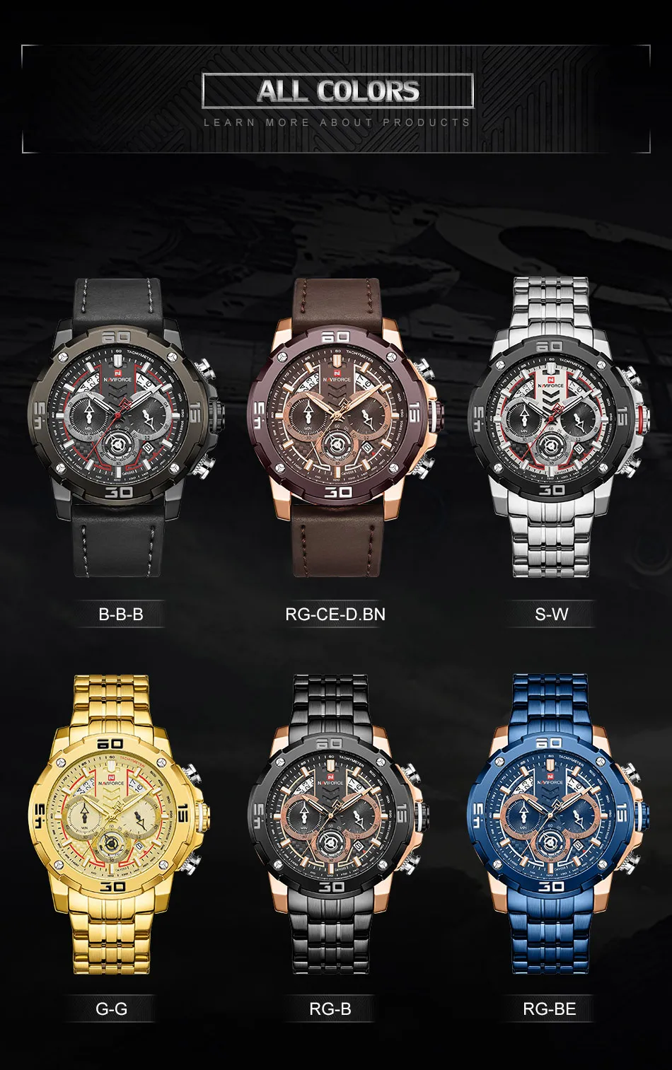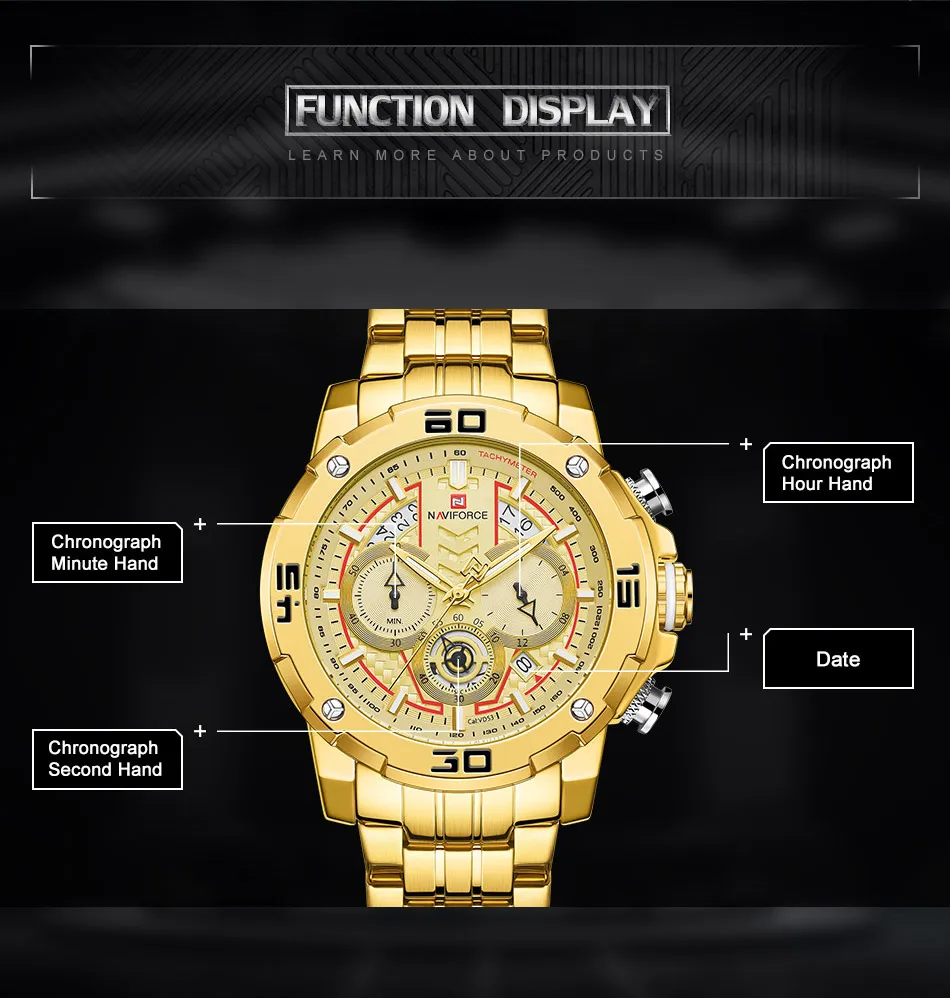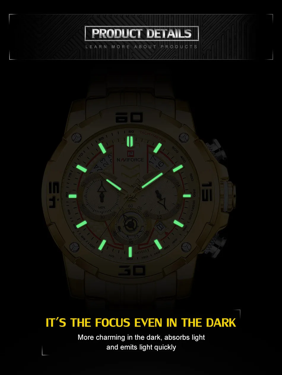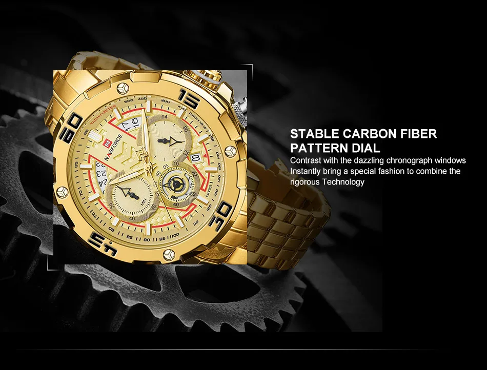 NAVIFORCE Watches Sport Chronograph Luxury Gold Watch Men Quartz Wristwatch Date Waterproof Clock Relogio Masculino 2020
