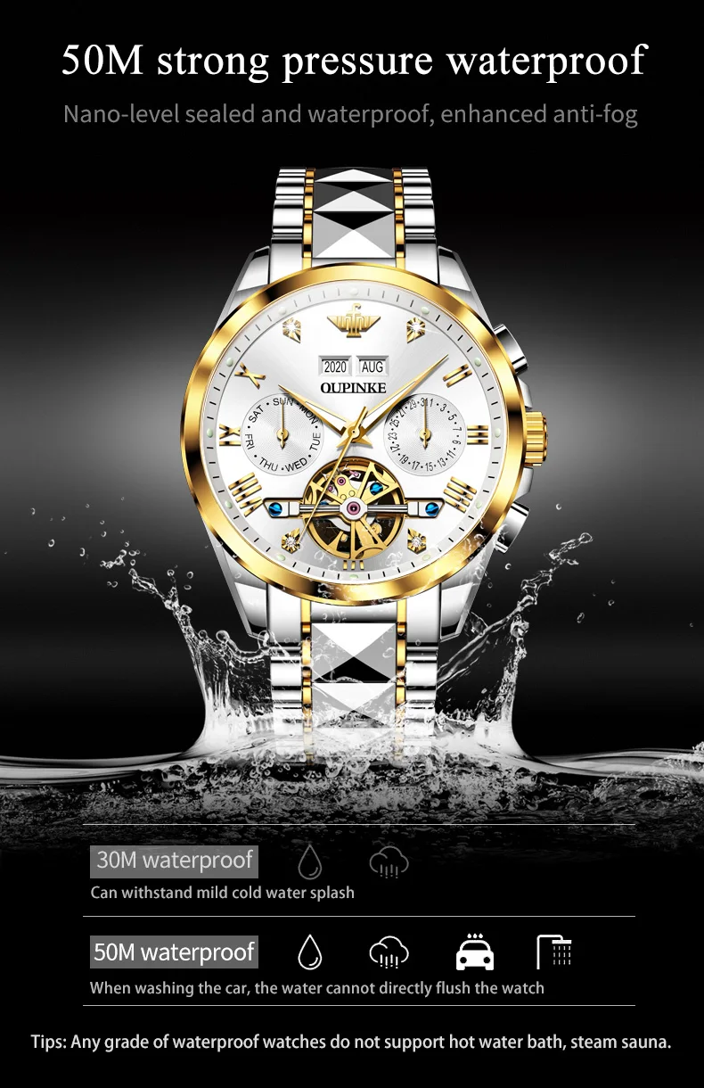 OUPINKE Automatic Mechanical Watch for Men Luxury Top Brand Tourbillon Design Sapphire Mirror Men’s Wristwatches Reloj Hombre