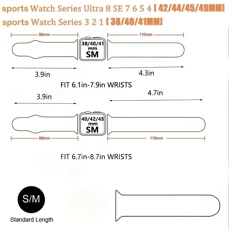 • Compatible with multiple Apple Watch sizes :This silicone band is compatible with Apple Watches ranging from 38mm to 49mm, making it a versatile option for users with different watch sizes.