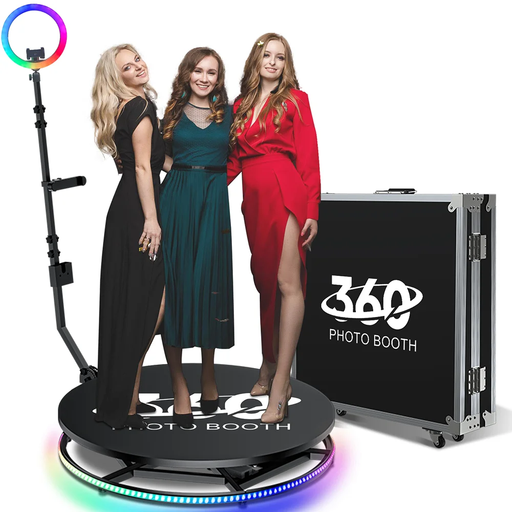 The 360 photo booth comes with multiple brackets, which support placing phone, DSLR camera, GoPro and tablet. Suitable for people to use different shooting devices in various occasions ( phone, DSLR camera, GoPro and tablet are not included ).