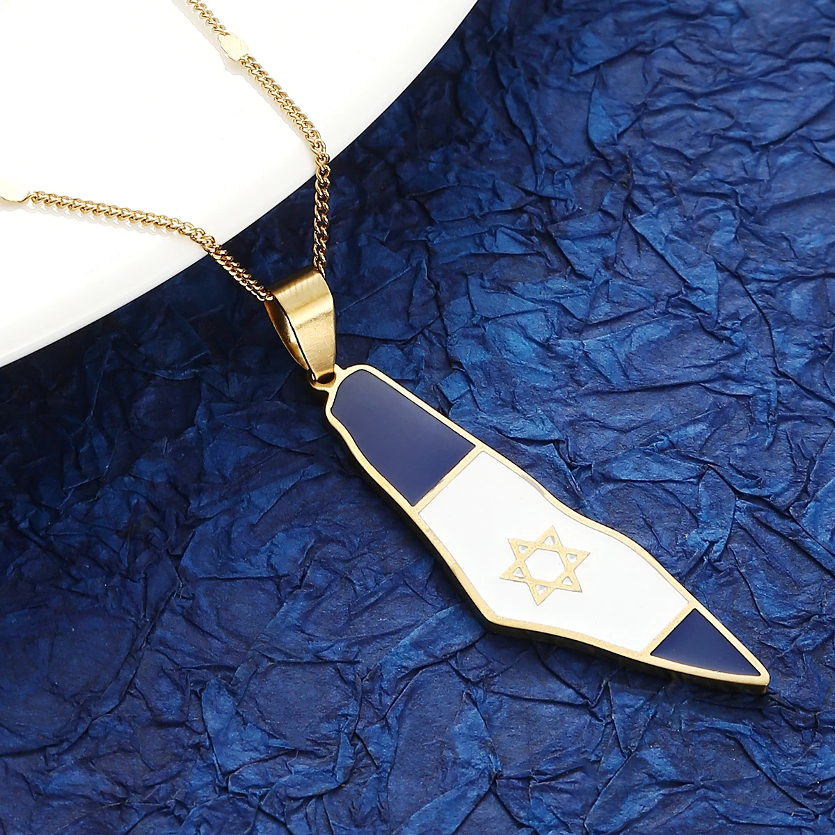Stainless Enamel State Of Israel Map Israeli Flag Pendant Necklace Women Men Neck Chain Patriotic Charm Jewelry