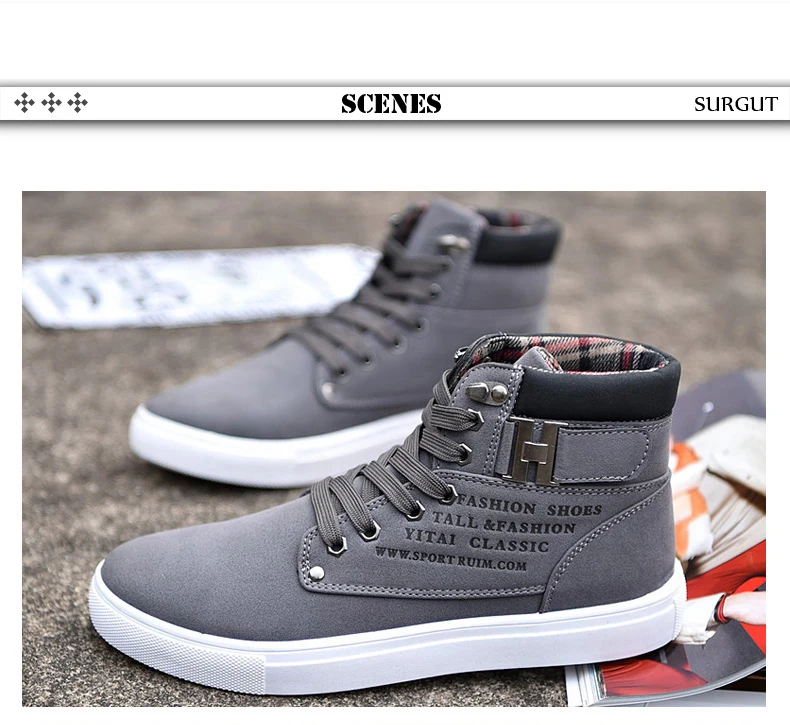 SURGUT Men Shoes 2023 Top Fashion New Winter Front Lace-Up Casual Ankle Boots Autumn Shoes Men Wedge Fur Warm Leather Footwear