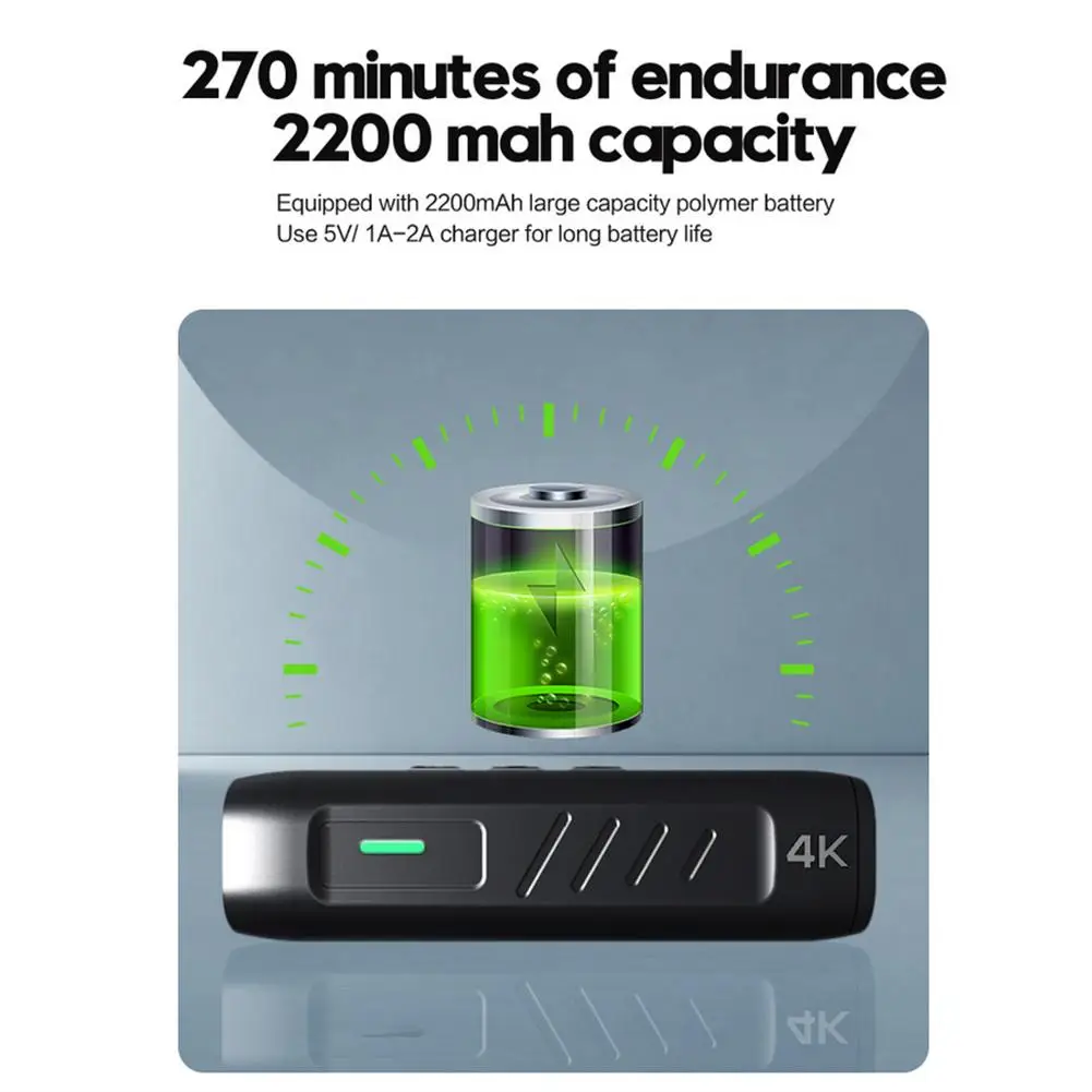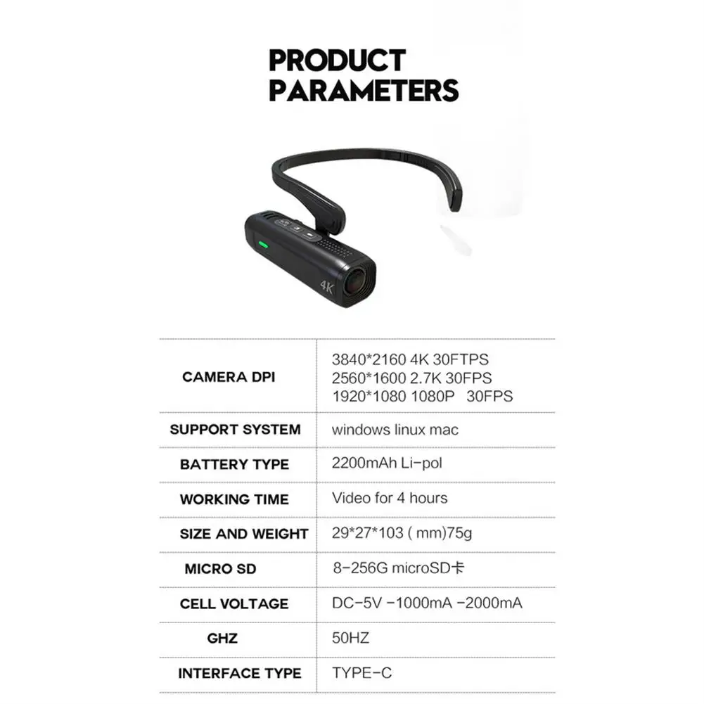 T198 4K Hd Video Camera Wifi Head-Mounted Camcorder 2200Mah Battery Wearable Vlogging Camera IP65 Waterproof